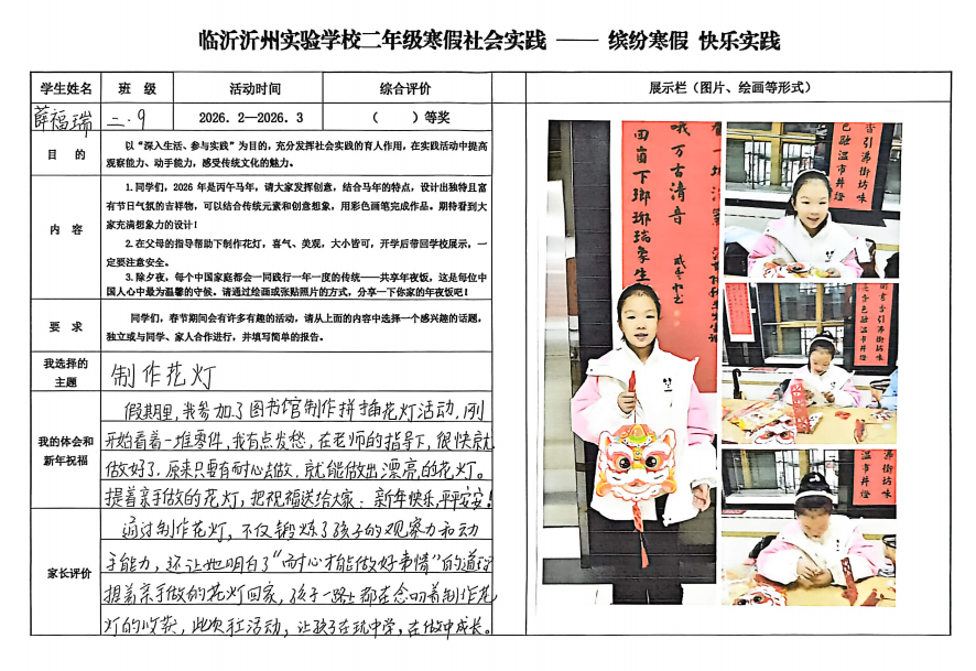 春风轻拂校园,枝头的灯笼随风摇曳。临沂沂州实验学校的寒假实践作业展如约而至,为这春日的校园增添了一抹温暖而热闹的色彩。