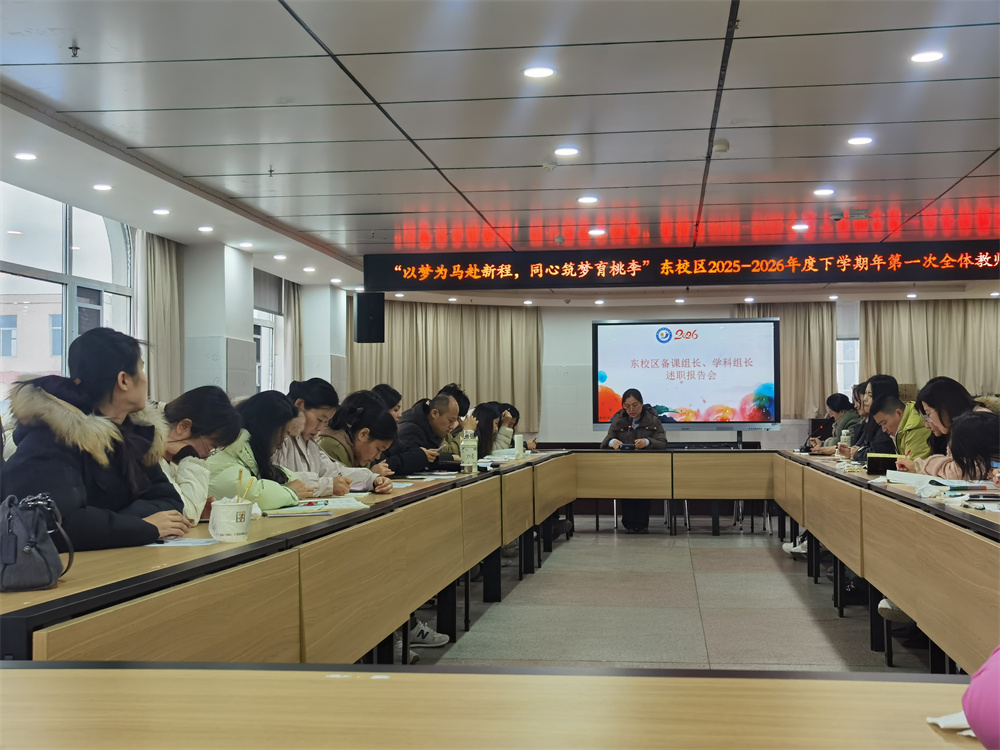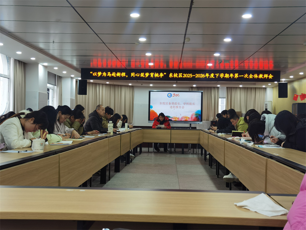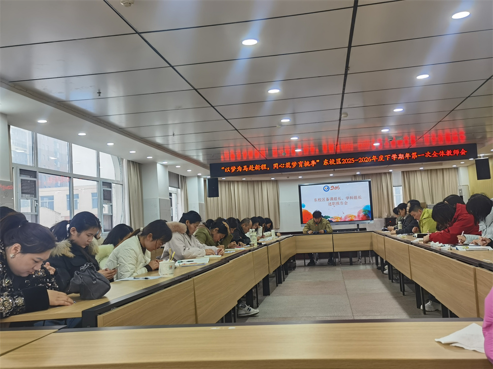 此次全体教师会议的圆满召开,既是对上一阶段工作的全面复盘与深刻总结,更是对新学期发展蓝图的清晰擘画与全面动员。通过会议,东校区全体教师进一步统一了思想、凝聚了共识、明确了方向、鼓足了干劲。全体教师将以此次会议为契机,以更加饱满的热情、更加务实的作风、更加有力的举措,深耕课堂教学、潜心立德树人,同心同向、携手奋进,以梦为马、不负韶华,全力推动校区教育教学工作再上新台阶、再谱新篇章!