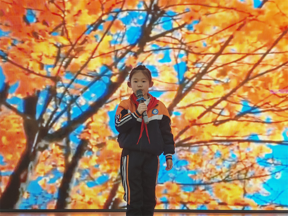 决赛现场,伴随着主持人饱含深情的开场白,比赛正式拉开帷幕。十七位选手依次登台,围绕 “我爱读书” 主题各抒己见:王芸霏同学以《书香伴成长,阅读向未来》诉说书香浸润的成长之路;井思淼同学在《好书伴诗行》中勾勒书中的诗与远方;胡竣茜同学将书籍比作 “任意门”,带大家穿越时空探索未知;王米多同学以《读书,点亮童年的小星光》诠释阅读对童年的滋养…… 选手们或激情澎湃、字句铿锵,或娓娓道来、言辞恳切,多样的演讲风格碰撞出个性的火花,真挚的情感表达引发全场师生强烈共鸣,现场掌声此起彼伏。