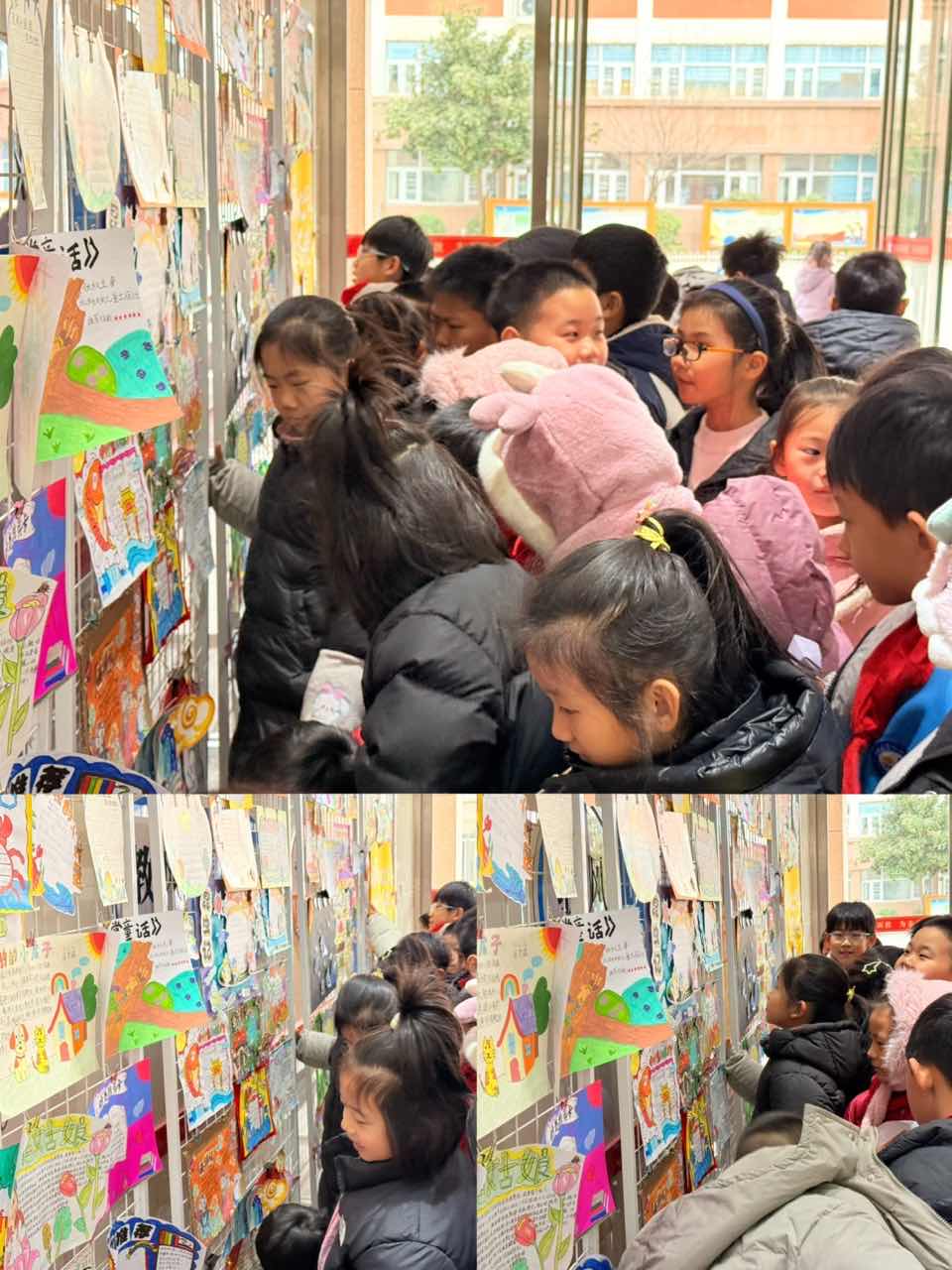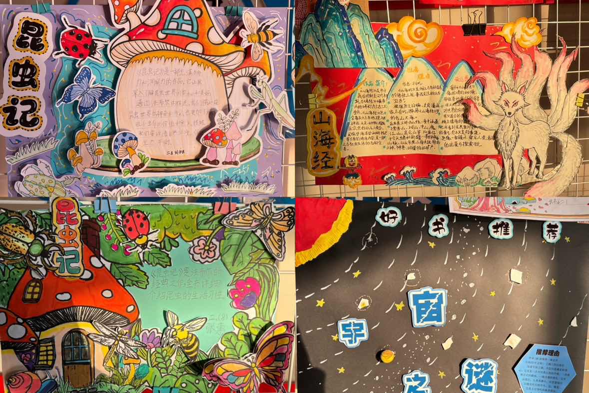 为保证活动的专业与公正,年级特别邀请语文组与美术组教师共同组成评审团,从内容、创意、美感等多个维度进行评选。一批优秀作品在立行楼一楼大厅集中展出,迅速成为校园里的“热门打卡点”。课余时间,展览区人流不断,师生们驻足欣赏、交流心得,形成了“推荐一本好书,共享阅读之乐”的温暖场景。