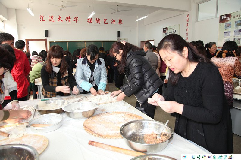 活动以五个工会组为单位进行,各组自备工具,在确保正常教育教学工作的同时,积极组织空课教师参与活动,7日上午学校的陶艺教室里欢声笑语,热闹非凡,各组在领到学校食堂给备好的饺子馅和面后,就争先恐后,你追我赶的干了起来,老师们充分展示着自己的厨艺特长,有的揉面,有的擀皮,有的包饺子,配合默契,不一会一个个别致美观的饺子呈现在大家面前,大家相互观赏着,赞美着,交流着......