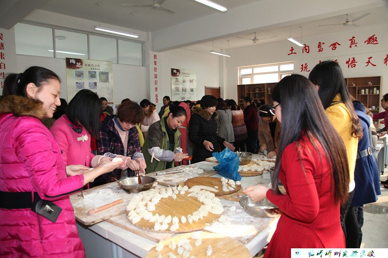 活动过程穿插了10分钟的包饺子比赛,以每组所包完美水饺的个数为准,评出了名次,比赛场面紧张热烈,不仅赛出了老师们的厨艺风采,更赛出了老师们的凝聚力和向心力。学校领导王自祥校长和徐勤波书记亲临现场观看比赛,参与包饺子,这充分体现了学校大家庭的温暖和学校领导对教职工的人文关怀。