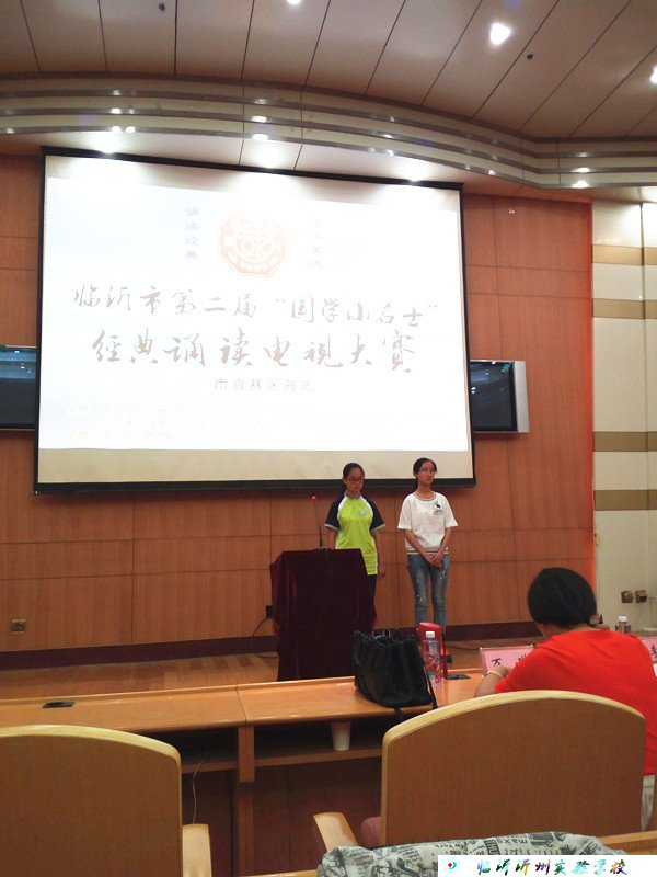 6月12日上午,我校组织学生参加临沂市第二届“国学小名士”经典诵读电视大赛市直赛区海选活动,我校参赛选手分别是七年级七班傅孟然同学,七年级八班尤璐、付子群同学,学生处李倩主任带队。