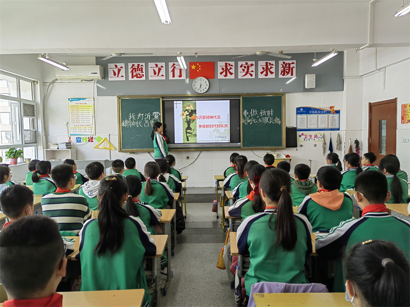 为弘扬沂蒙精神,引导广大少先队员传承红色基因,2023年4月10日,临沂沂州实验学校开展了以“我为沂蒙精神代言 争做新时代好队员”为主题的班会活动。