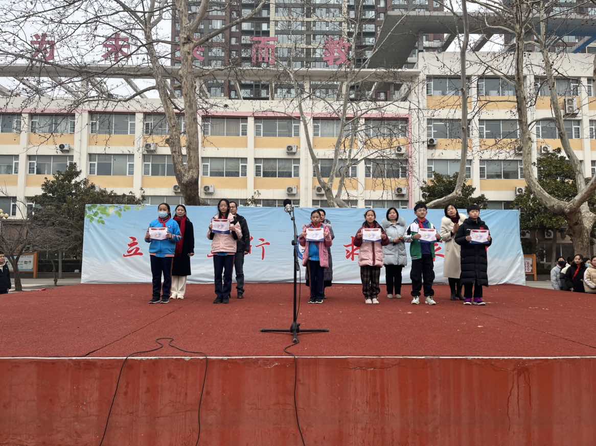 小学政教处张作萍主任宣读寒假实践作业获奖名单,获奖学生依次上台领奖。她鼓励同学们积极参与各项实践活动,以得到更多的锻炼。