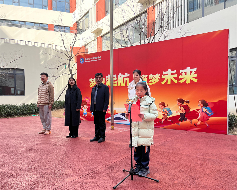 以笔为桨,以梦为帆。二年级1班学生代表毛晓彤用清脆的声音向同学们发出三条倡议,新的学期要继续保持热爱读书、创建平安校园,争做文明之星。毛晓彤同学的发言为新学期同学们的学习、生活注入了活力,彰显出新时代少年的精神风貌。