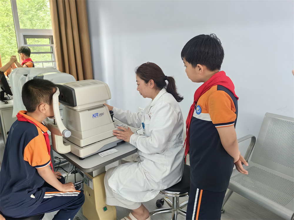 参观过程中,医护人员耐心指导,还为同学们检查了视力,提醒同学们爱眼护眼。眼科中心阚士波主任亲自为同学们讲解,围绕“如何有效预防近视”“近视防控黄金期”等核心问题,结合学生日常学习惯,重点讲解“一拳一尺一寸”读写姿势、每天2小时户外活动、电子设备使用时长管控等科学建议,并针对“护眼灯选择”“眼保健操误区”等细节问题逐一答疑。并希望同学们将今天所学转化为日常习惯,用明亮双眸点亮美好前程。