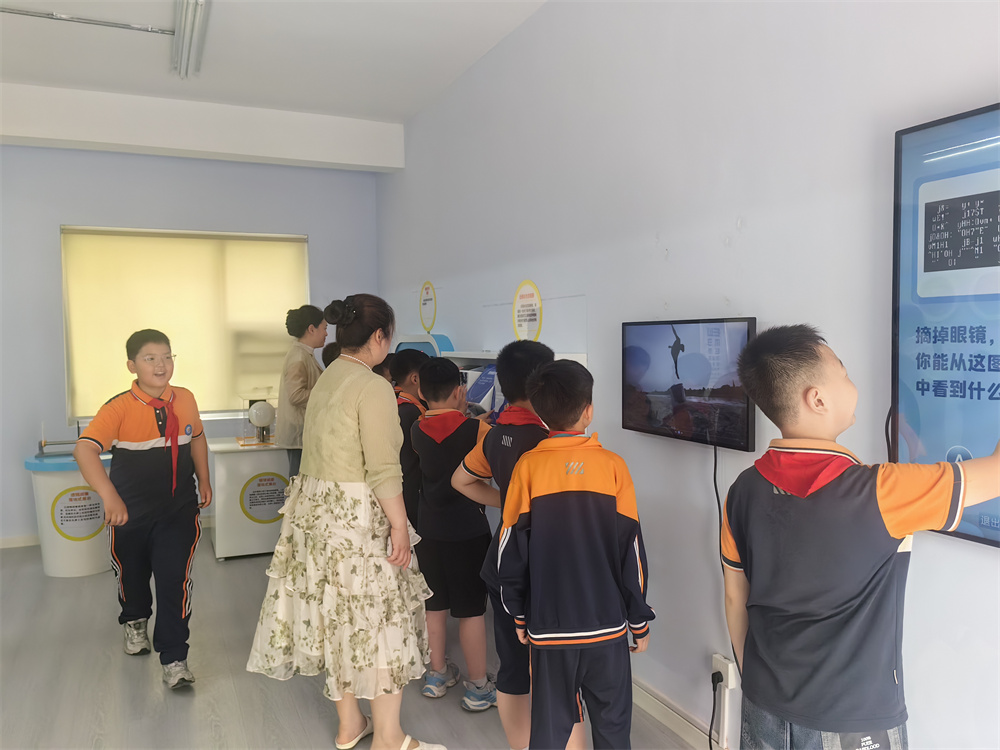以“守护明眸·点亮未来”为主题的科普馆,集知识性、趣味性、互动性于一体。逼真的眼球结构模型前,同学们认真观察,直观理解眼睛生理构造;视觉模拟装置旁,大家轮流体验不同视力状态下的视觉差异,切身感受近视对生活的影响;近视成因演示区通过动态模型与案例解析,深入浅出揭示用眼过度、光线不当等近视诱因;护眼挑战游戏区则以闯关形式,引导学生在趣味互动中掌握科学用眼常识。现场气氛热烈,同学们兴致盎然。