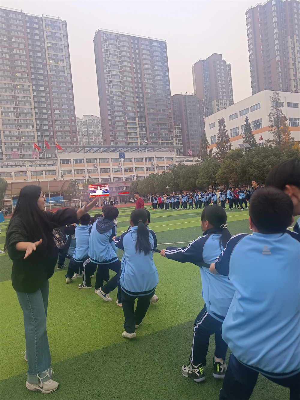 赛前,各班级代表队精神抖擞、列队待发。队员们相互鼓劲、调整状态,班主任则在旁细致指导发力技巧,叮嘱安全事项,师生同心的氛围愈发浓厚。