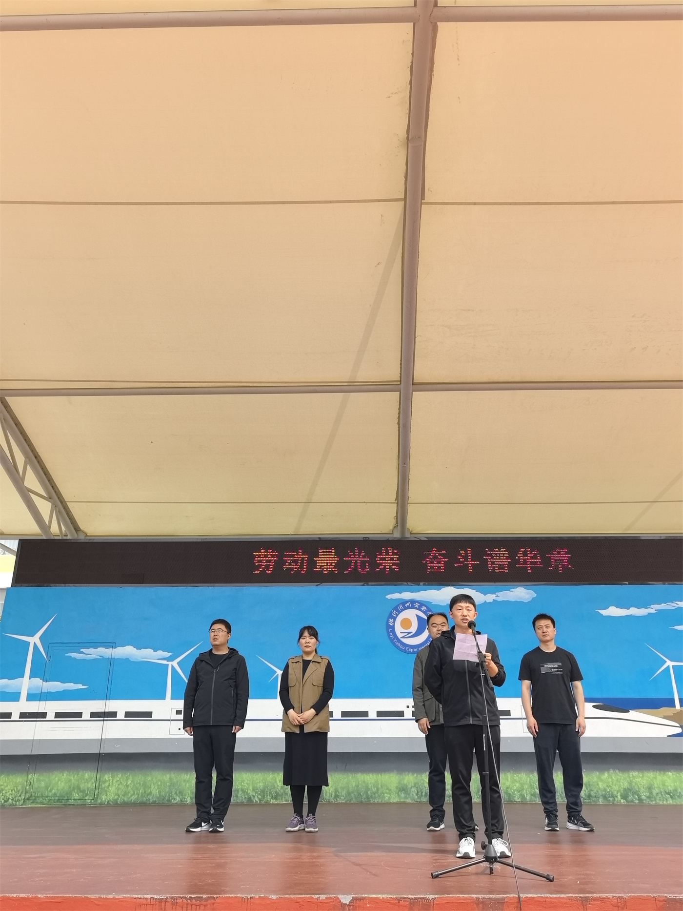 教师代表们也从不同角度阐释了劳动与奋斗的深刻内涵。校本部张照庆老师号召同学们树立正确劳动观,摒弃“不劳而获”的侥幸心理,在课堂学习、校园值日、集体活动中践行劳动精神,并强调规则意识与自律精神;高铁校区张文昌老师指出,真正值得尊敬的,是那些在岗位上默默奉献、精益求精的劳动者,同学们应在日常学习生活中践行劳动与奋斗精神,不负青春时光;东校区谢清娟老师勉励全体师生以实干笃定前行,用奋斗书写人生华章,让劳动精神扎根校园。