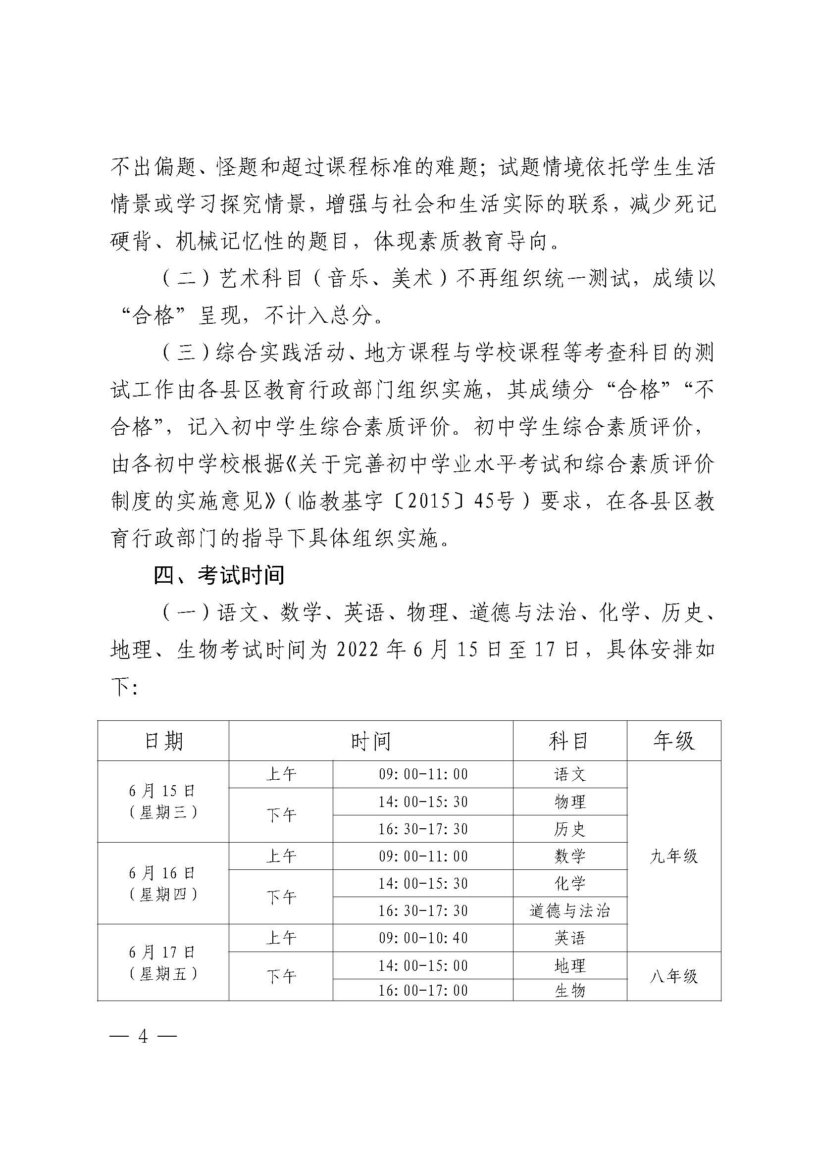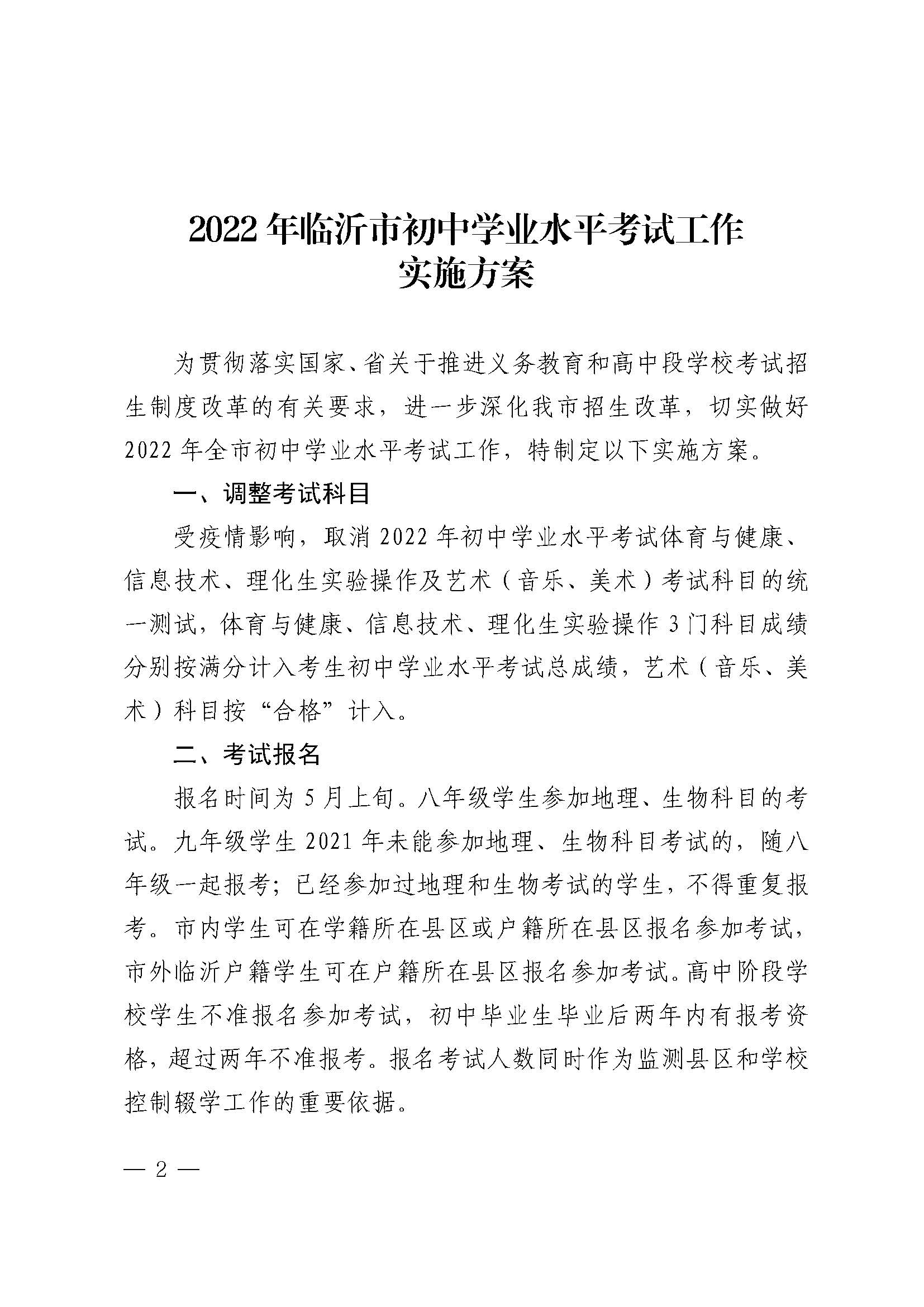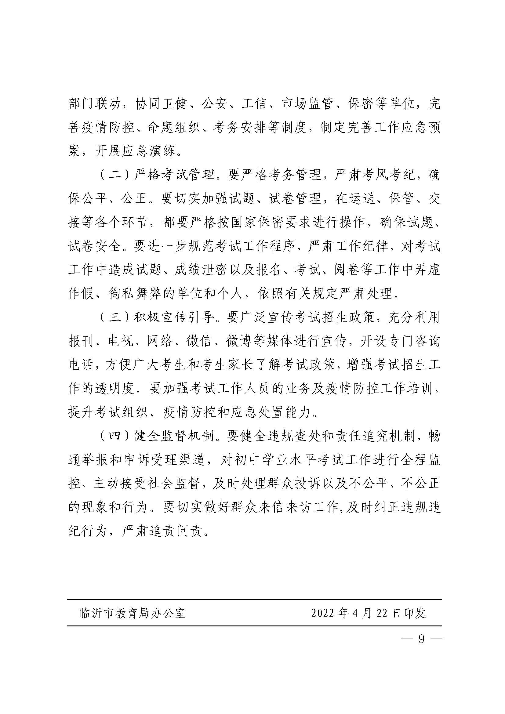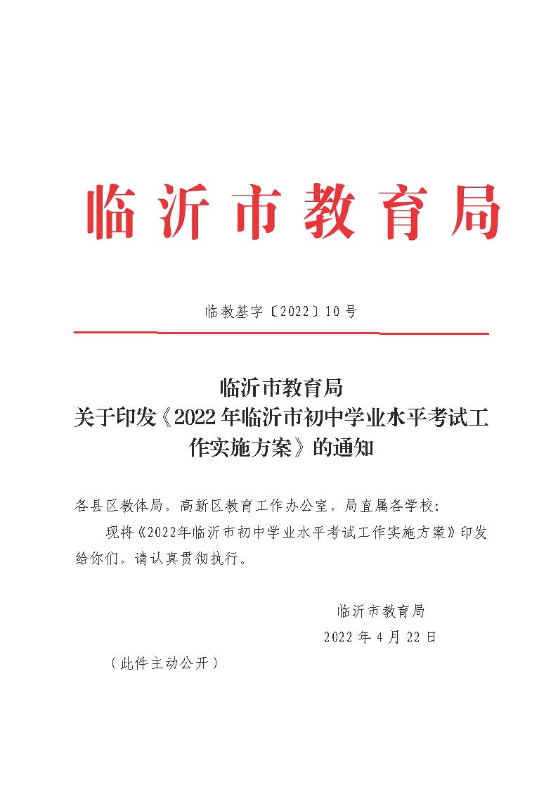 临教基字〔2022〕10号-临沂市教育局关于印发《2022年临沂市初中学业水平考试工作实施方案》的通知(主动公开)