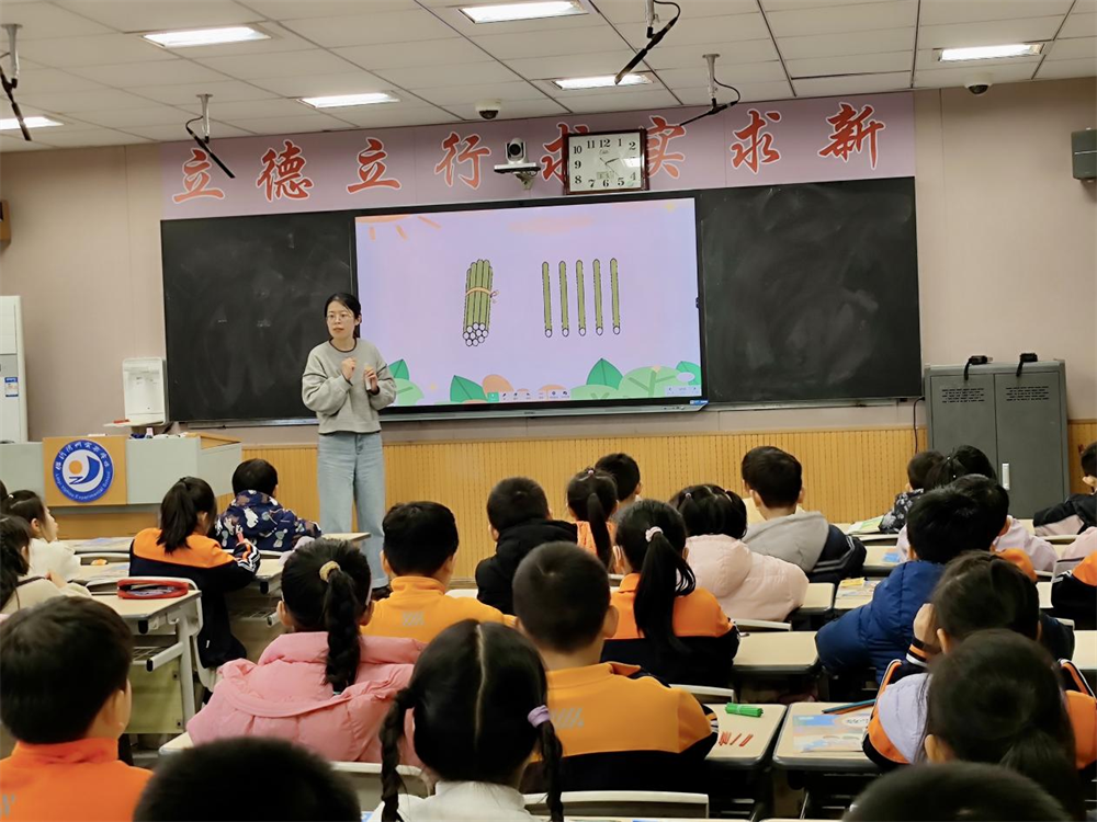 第二节课是由一年级石胜楠老师执教的《十几减9》。石老师通过送气球的小故事引出课题,借助小棒,探索减法,从生活中寻找问题,让学生提出问题,课堂中讲授三种计算方法解答问题,教学中运用信息科技手段,对学生的操作进行实时投屏,清楚地面向全体学生展示,课堂教学富有趣味和乐趣,学生积极性高。
