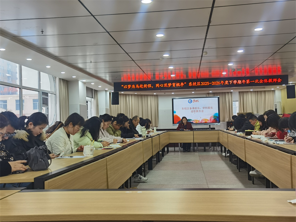 此次全体教师会议的圆满召开,既是对上一阶段工作的全面复盘与深刻总结,更是对新学期发展蓝图的清晰擘画与全面动员。通过会议,东校区全体教师进一步统一了思想、凝聚了共识、明确了方向、鼓足了干劲。全体教师将以此次会议为契机,以更加饱满的热情、更加务实的作风、更加有力的举措,深耕课堂教学、潜心立德树人,同心同向、携手奋进,以梦为马、不负韶华,全力推动校区教育教学工作再上新台阶、再谱新篇章!