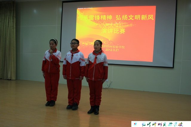 每年3月是学雷锋月,为了让现在的学生了解雷锋、学习雷锋,加深对雷锋精神的认识,沂州实验学校小学部于2012年3月21日下午三四节课、中学部于3月22日下午三四节课在中学部教学楼五楼礼堂隆重举行了“传承雷锋精神,弘扬文明新风”演讲比赛。比赛在嘹亮的“学习雷锋好榜样”的歌声中拉开帷幕,中小学部29位参赛选手的精彩演讲,给现场的师生留下了深刻的印象。学生通过对演讲稿的聆听,对雷锋叔叔及其精神有了深刻的了解和认识。李守峰副校长做了重要的总结讲话,号召全体师生学习雷锋舍己为人的奉献精神、艰苦卓绝的奋斗精神、勇于钻研的螺丝钉精神。比赛结束之际,全场起立进行庄严宣誓,在震耳欲聋的宣誓声中仿佛又看到了当年的雷锋,并且在心里暗下决心:学习雷锋不光在3月,还在生活的每一天。