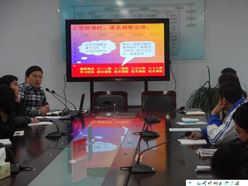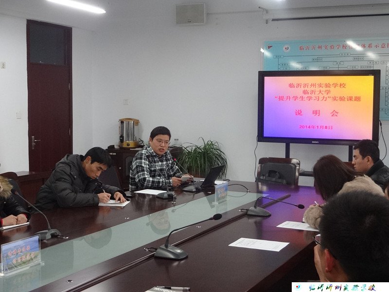 为了积极落实学校要求,响应学校提升学生学习力的号召,进一步向三学段八年级老师说明临沂大学“提升学生学习力”实验课题的实施目的、方案和意义,在临沂大学课题项目负责人董耘教授前期说明会的基础上,2014年1月8日下午,三学段在四号楼三楼会议室再次召开“提升学生学习力”实验课题说明会。刘淼主任、王蕾副主任,曲寿刚书记、徐雷老师、王向前老师及八年级全体任课老师参加了会议。