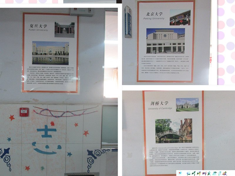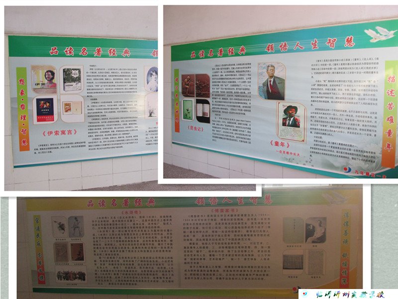 楼道文化建设是校园文化建设的一部分,更是因地制宜地开展素质教育的重要阵地。本学期以来,三学段八九年级精心打造楼道文化,将每层楼道进行了统一规划,营造校园人文氛围,力争让每扇墙壁都说话,每个角落都育人。三学段楼道文化从设计到建设处处结合八九年级学生特点,体现着三学段的育人方向,主要以“理想教育”、“静文化”和“经典文化”为内容,分为三大版块:第一版块为名校博览,主要通过展示中外名校,激发学生树立远大理想;第二版块是名言警句,主要展示关于“静”的语录,引导学生树立起正确的世界观、人生观、价值观,使他们的青春焕发健康、蓬勃的活力;第三版块是经典文化,以“读经典的书,做有内涵的人”为主题,将古今中外名著展示在墙壁,以图文结合的形式对学生进行思想上的熏陶。