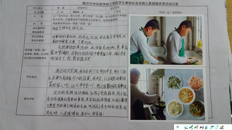 六年级“四菜一汤”实践作业让学生感受到挑战自我的兴奋,体会到父母日复一日、无怨无悔照顾子女的辛劳,激发了对美好生活的热爱和向往;九年级“自制毕业纪念册”实践作业让学生回顾了初中三年的历程,总结了自己成长的点滴,鼓足了顽强拼搏、奋发向上的信心和勇气。
