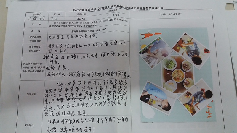 该社会实践作业把社会广泛提倡的“尊敬父母、自立自强”的家庭美德与学生的寒假生活有机结合起来,让孩子亲自用双手给家庭带来浓浓的亲情和深深的爱意,启发了孩子们的家庭观念和成人意识,渲染了节日气氛,很受家长们的欢迎,收到了较好的教育效果和社会效益。
