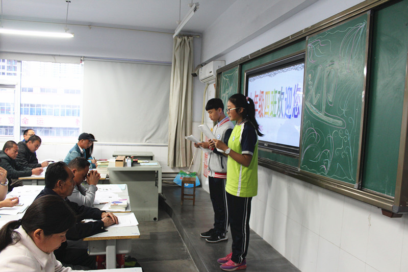首先,七年级和八年级的各班主任全面调动学生的积极性,让部分学生参与到家长会会场地布置,学生们针对家长会对教室做了精心布置:教室干净整洁,黑板上或写着欢迎家长的标语,或画着温馨的图画,使各位家长一走进教室就能感受到一种温馨、和谐的氛围。其次,家长会上,各班班主任、任课老师准备了详实的材料,就本学期开学以来的学校工作、班级活动及学生在校表现,向与会家长一一汇报,并分析了本次期中考试的成绩、学生在学习中存在的一些问题,给予了家长一些具体的有针对性的建议。同时,也就家长应如何更好的配合学校做好孩子们的教育工作交流了看法。