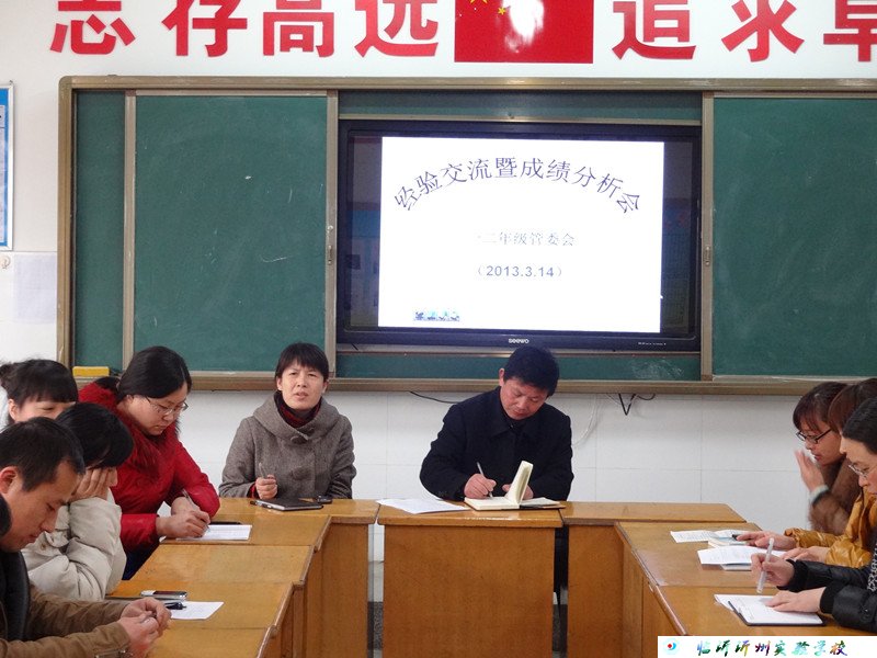 2013年3月14日下午,我段期中考试成绩交流会在二年级五班召开,王宗美主任主持会议。王爱永副校长及一学段全体教师参加了会议。