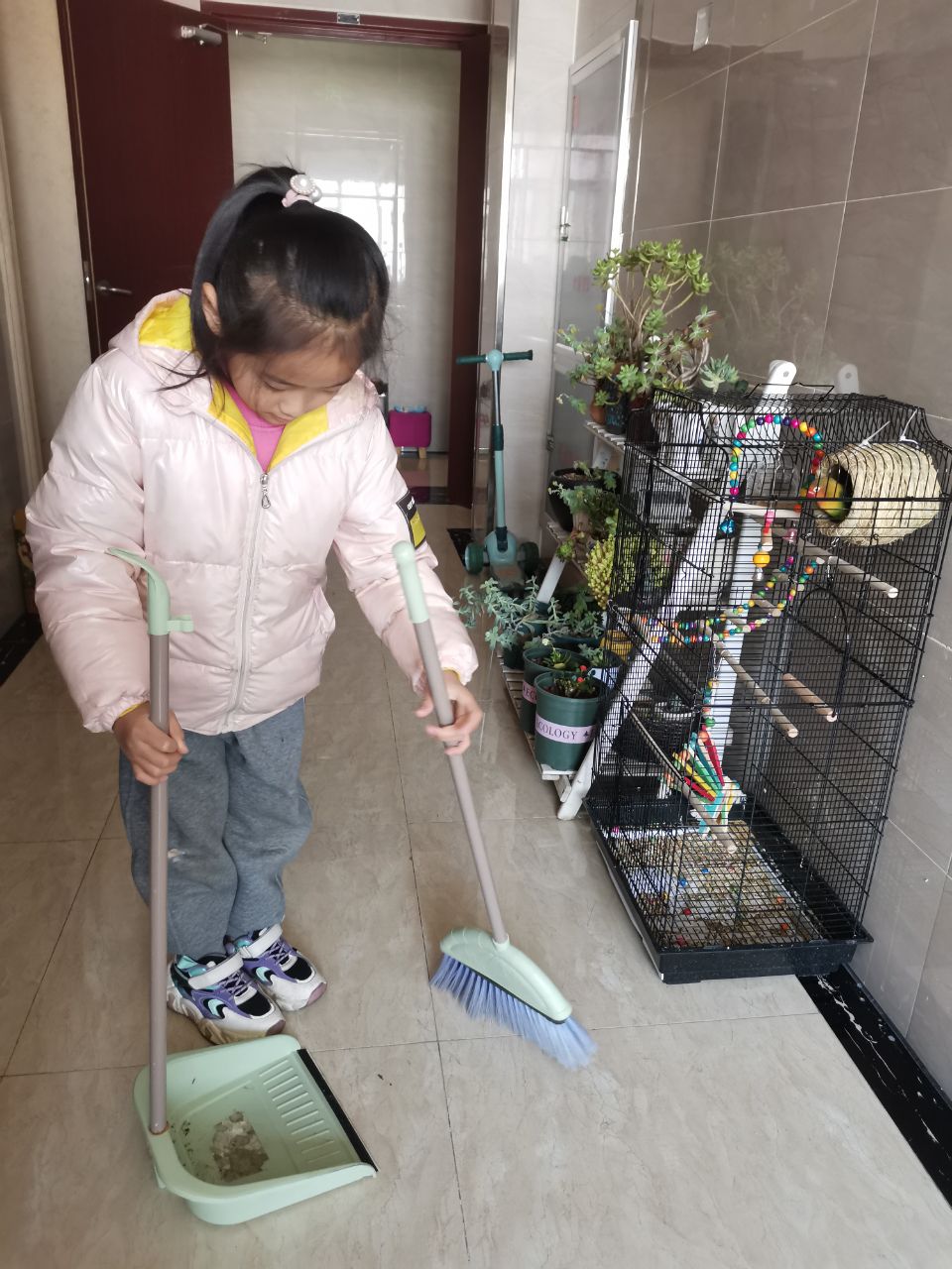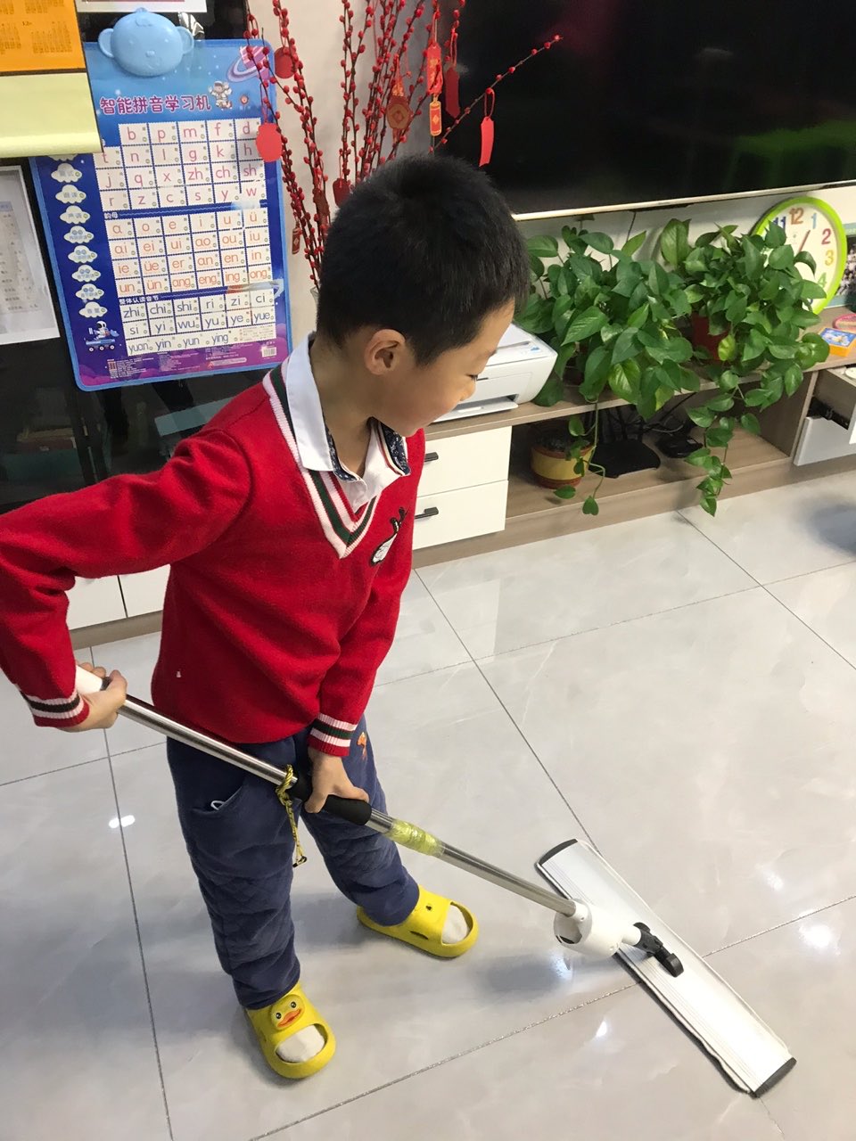 孩子们选取了自己适合的打扫项目,拿着抹布、扫把、拖把,在爸爸妈妈的指导下扫地、擦桌子、擦椅子、整理书柜、整理玩具等等,孩子们认认真真打扫自己的家,创造着自己的美丽家园。