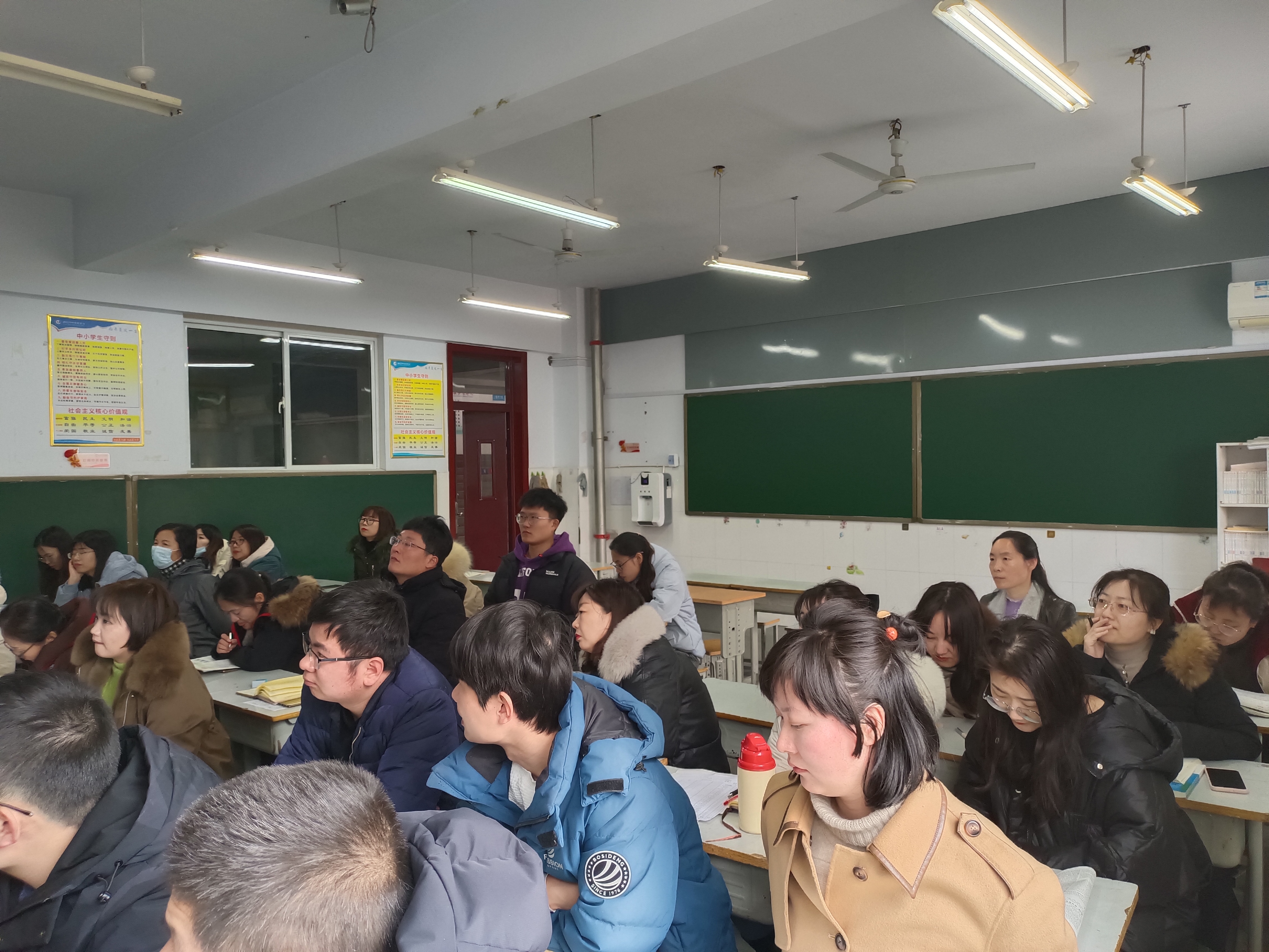 接着,魏晓军主任也阐明了八年级下学期学生面临生地中考,学习内容的增多,难度的增大的现状,这些对师生都提出了挑战。因此,要求全体老师通过言传身教,引导每位同学都做到心中有梦想,眼中有希望,同时要将分类推进学生发展落到实处,确保各类学生都学有所获、学有所得、学有所进。班主任和任课老师做好班级的稳定和拔尖促优扩面工作,力求带领学生平稳度过八年级下学期,为九年级中考做足准备。