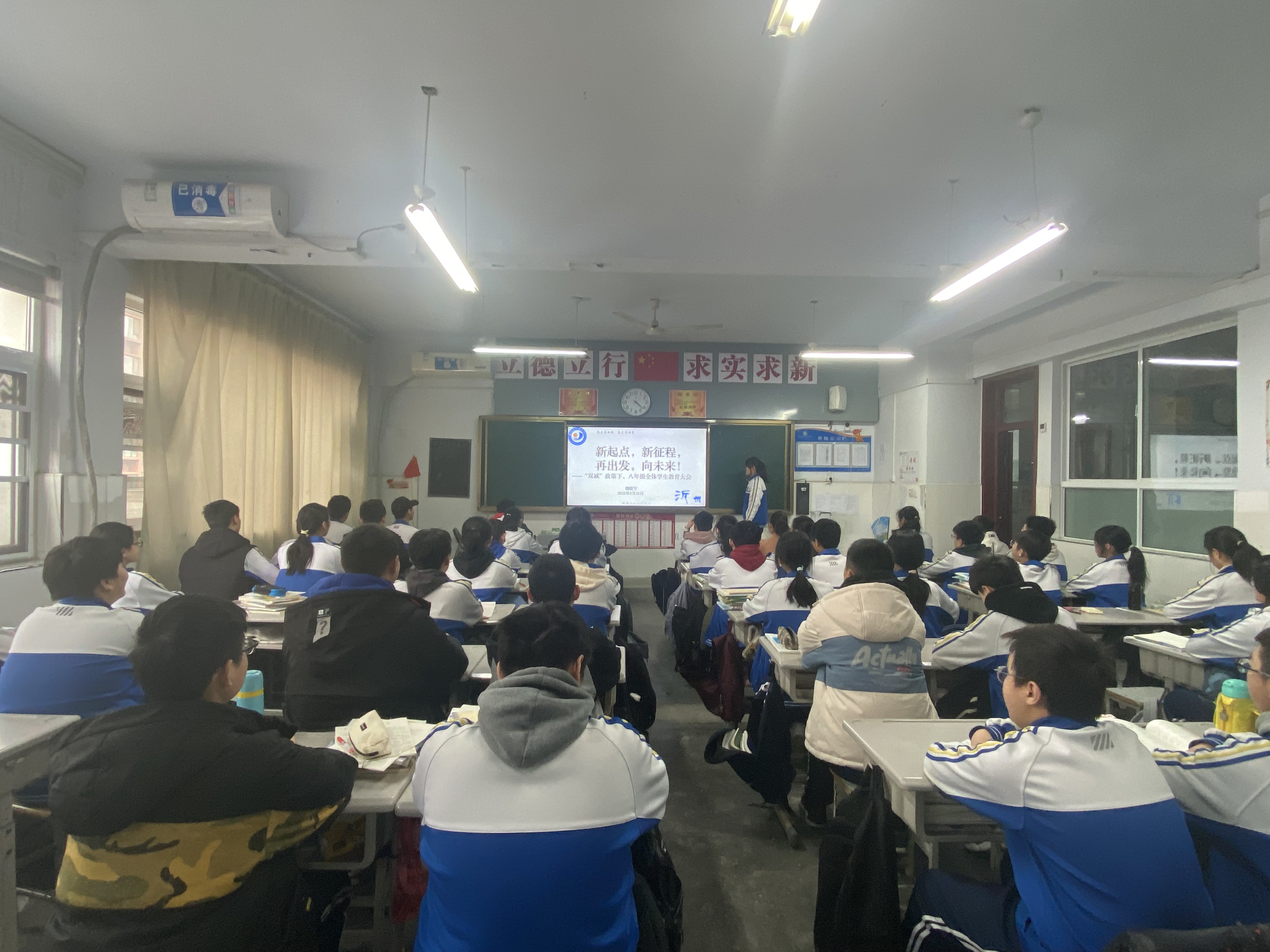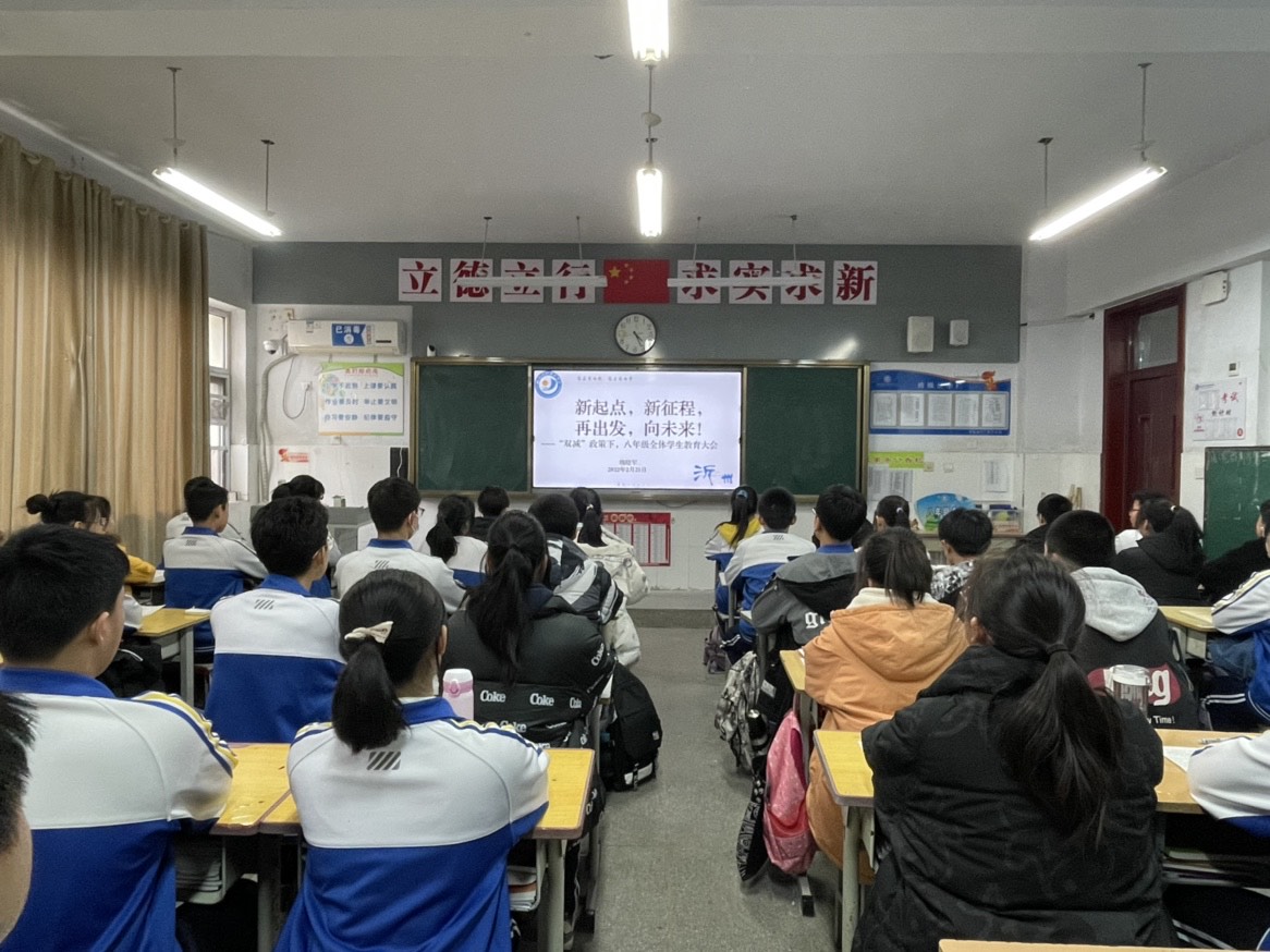 八年级在初中阶段学习中起承上启下的作用,是学生个性发展的关键时期,更是容易造成学生两极分化的非常时期。2月21日下午,我校八年级召开“双减”政策下全体学生教育大会,旨在结合八年级的实际情況,坚持以加强常规纪律教育为基础,以提高八年级整体素质为目标,继续面向全体学生,以学生发展为本,强化内部管理,注重过程管理,切实抓好整个年级的教育教学工作,确保学生由八年级向九年级平稳过渡。会议由年级主任魏晓军主持。