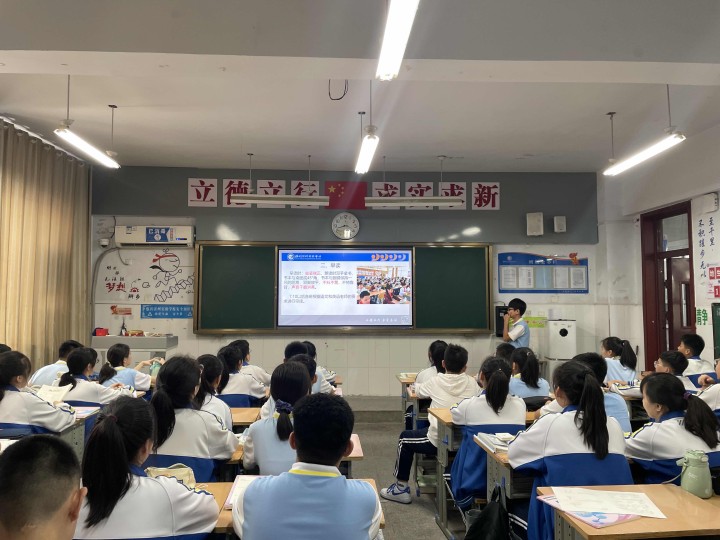 为了加强学生对行为规范的认识,进一步创造良好的育人环境,八年级于开学伊始召开了以“践行一日常规,规范文明行为”的主题班会。本次主题班会由惠民老师主讲,八年级全体班主任和学生共同参加。