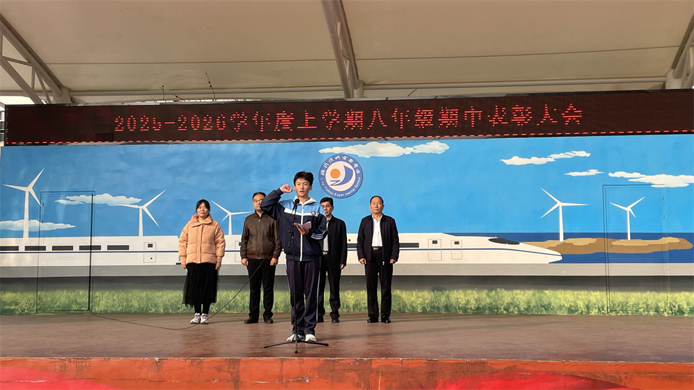 李校长的嘱托犹在耳畔,奋进号角已然吹响。大会尾声,八年级3班史芸赫同学带领全体同学高举右拳宣誓:“尊师守纪,团结友爱;珍惜时光,勤奋好学;脚踏实地,志存高远;全力以赴,成就梦想!”激昂誓言响彻校园,凝聚着学子砥砺奋进的坚定信念。