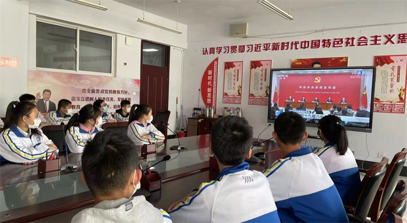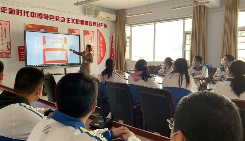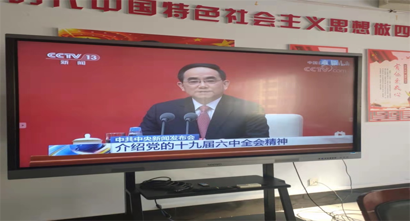 11月12日,在学校三楼会议厅,结合观看十九届六中全会的视频,党建科主任李倩为各级优秀学生代表解读了六中全会公报。