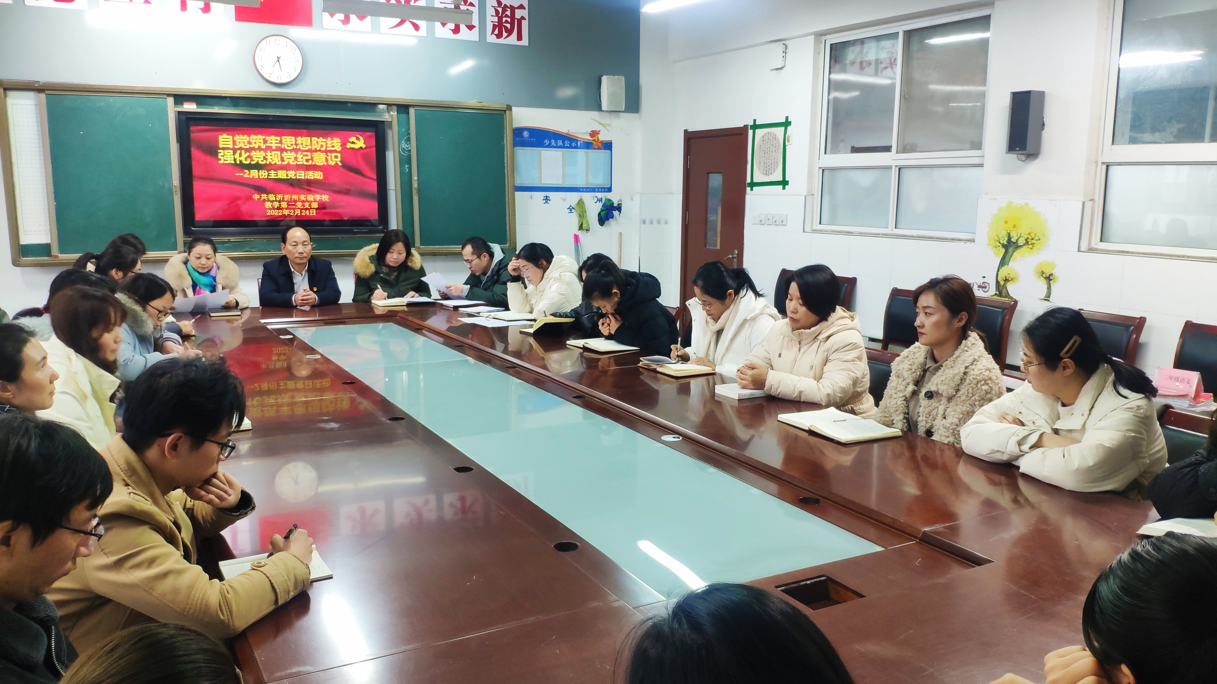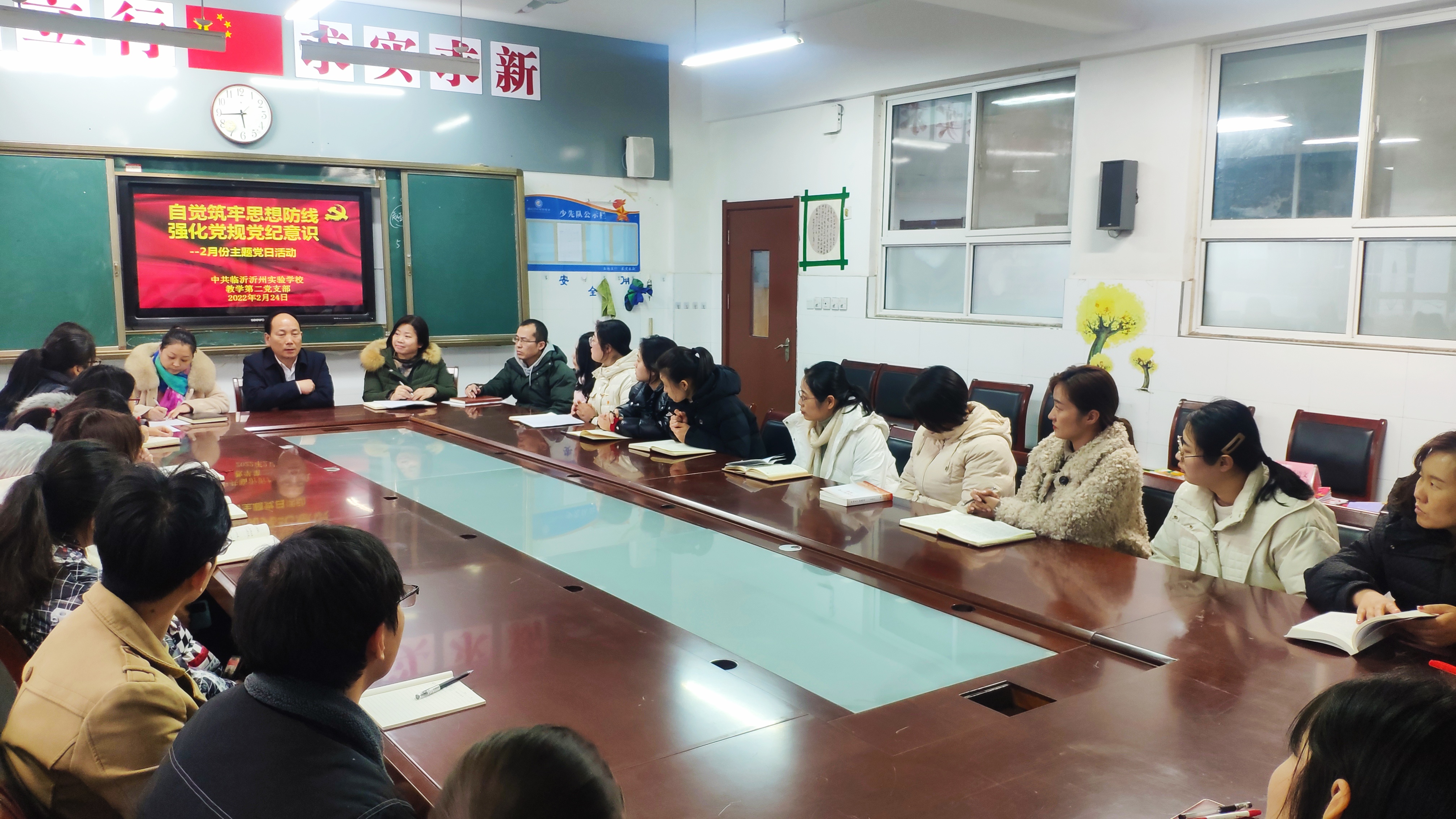 为深入开展党风廉政建设,切实加强党员教师廉洁自律意识。2022年2月24日下午,临沂沂州实验学校教学第一、第二党支部召开了二月份以“自觉筑牢思想防线,强化党规党纪意识“为主题的党日活动。