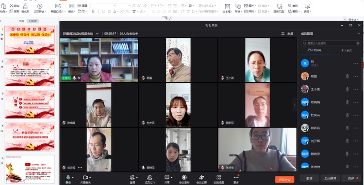 学校党委委员带领大家学习全国两会《政府工作报告》和全国两会精神。在疫情防控如此严峻的现阶段,我校许多党员同志积极参加志愿者活动,充分发挥了模范带头作用,让党旗在疫情防控一线高高飘扬。