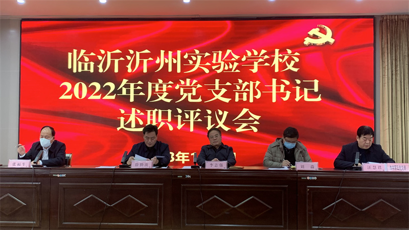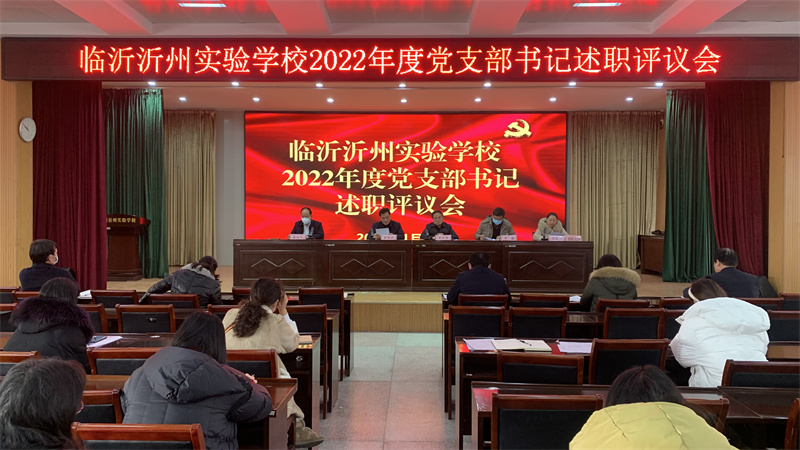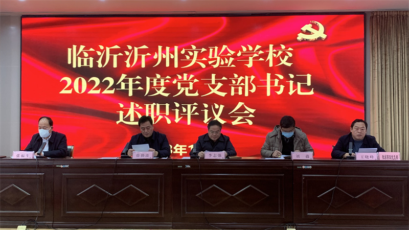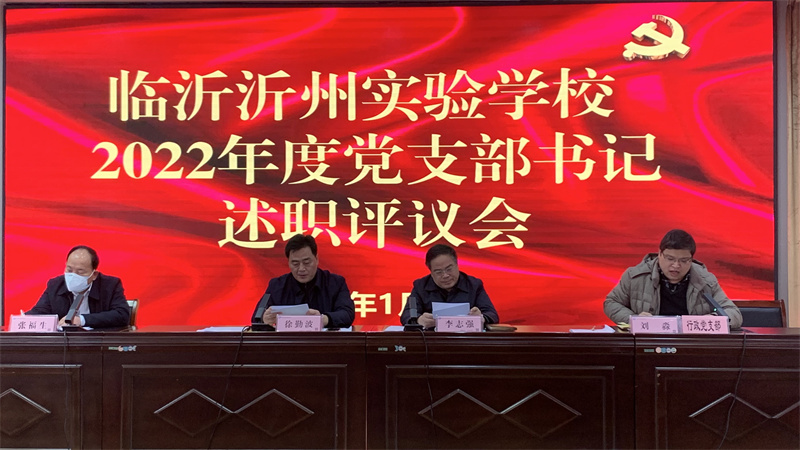 为全面贯彻落实习近平新时代中国特色社会主义思想和党的二十大精神,落实新时代党的组织路线,扎实推进党支部标准化、规范化建设,以高质量党建引领高质量发展,按照学校党委统一部署,2023年1月5日,临沂沂州实验学校召开了2022年度党支部书记述职评议会。会议由党委书记、校长徐勤波主持,党委委员、副校长李志强、张福生及全体中层干部参会。