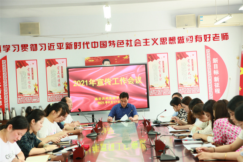 为进一步加强和改进学校的宣传工作,积极主动、客观准确地宣传学校发展、建设和创造性的工作,实现宣传工作制度化、科学化、规范化,提高工作质量和水平,发挥好新闻宣传的重要力量,2021年9月17日,临沂沂州实验学校召开了2021年宣传工作会议。会议由张福生副校长主持,学校领导班子成员以及各处室、年级信息宣传员参加了会议。