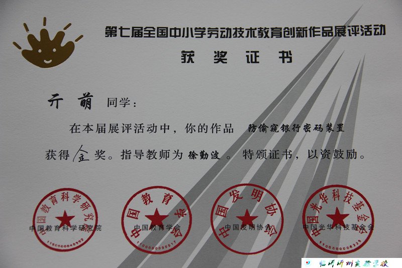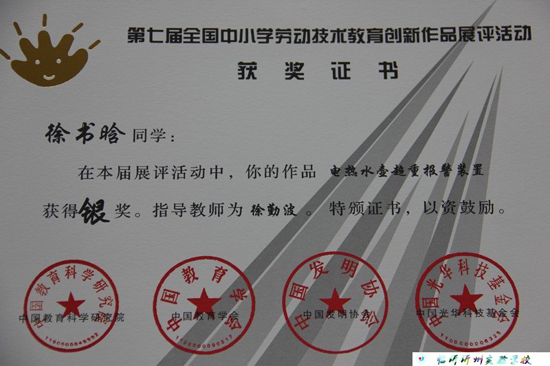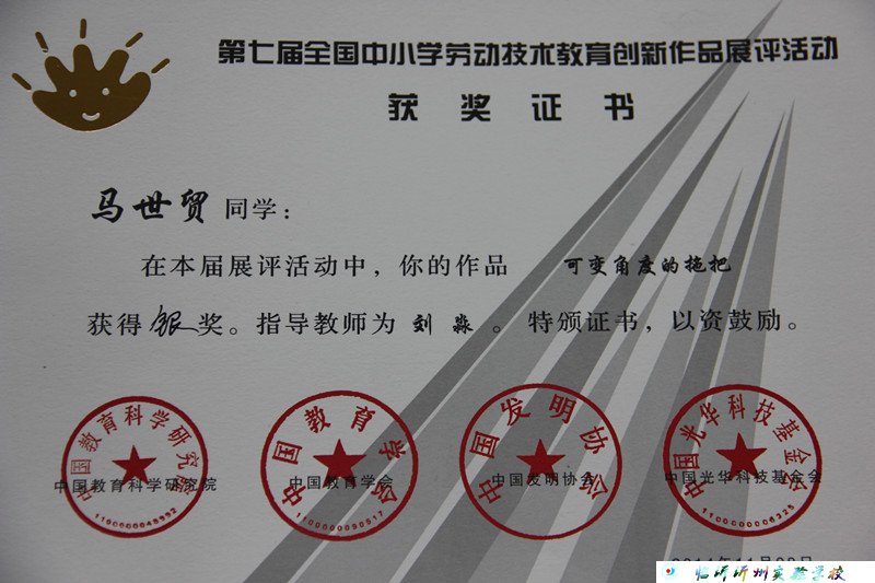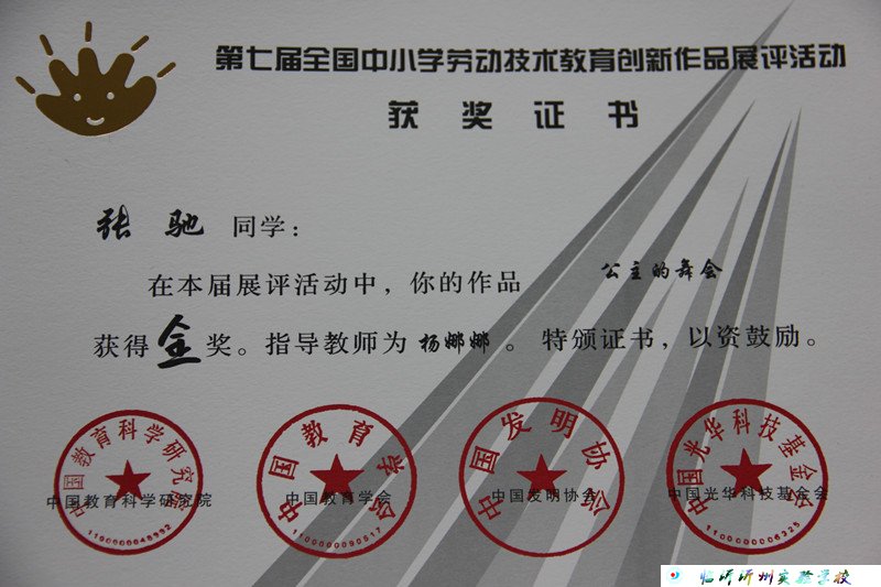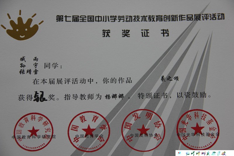 2014年11月6日至8日,第七届全国中小学劳动技术教育创新作品展评活动在山西省太原市隆重举行。沂州实验学校在徐勤波书记的精心组织安排下,共推荐了5件作品参赛,经过现场精彩的答辩展示,脱颖而出,荣获金奖2项、银奖3项,为临沂教育争了光。