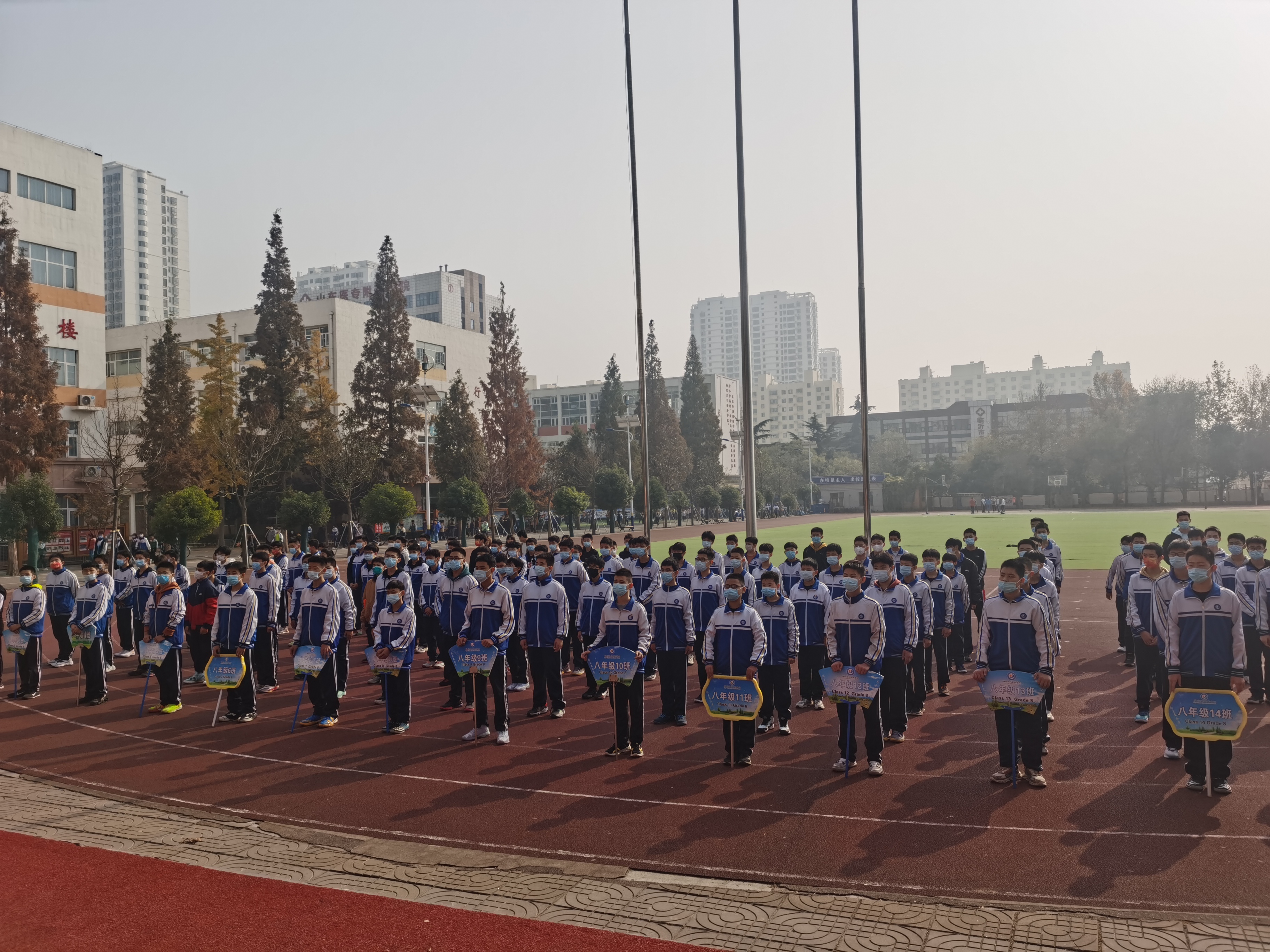 李守峰副校长出席开幕式并致辞。李校长代表学校领导充分肯定了八年级开学以来的工作成果:开学以来,八年级始终把提高教育质量和学生发展作为第一要务,全面贯彻新时代的教育方针,坚持学生的全面发展,年级开展的各项工作对提高学生的整体素质,推动年级建设都起到了至关重要的作用,获得了领导的一致好评。李校长对本届篮球赛做出期望:期望裁判员坚持“公平、公开、公正”的准则;期望全体运动员牢固树立“安全第一、友谊第一、比赛第二”的思想,敢于拼搏,赛出水平,赛出风格;期望全体工作人员把忠心献给学校,爱心献给学生,责任心献给大会。八年级主任魏晓军以一段激情澎湃的演讲拉开了篮球比赛的序幕,魏晓军主任提到:此次篮球赛的召开旨在认真贯彻落实《全民健身计划》《学校体育工作条例》以及市教委“健康校园”建设的有关要求,促进学校体育工作的开展,检验我校中学生体育竞技水平和精神文明素养。