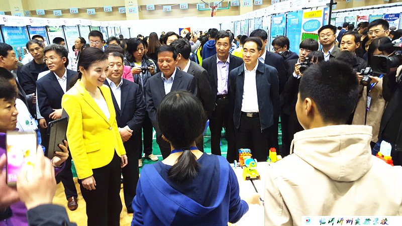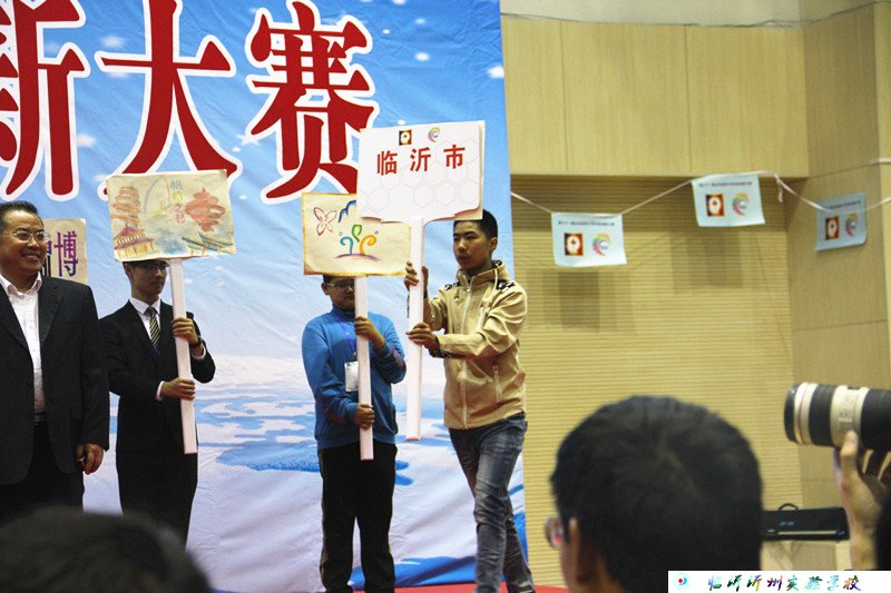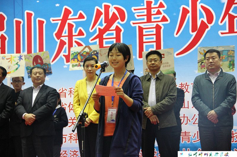 大赛期间,我校积极参加各项活动,徐书晗同学作为全省选手代表进行大会发言并向省科协副主席朱明、市委副书记张宏伟等与会领导介绍自己的发明作品,刘子航同学作为临沂市选手代表举牌入场呼号。