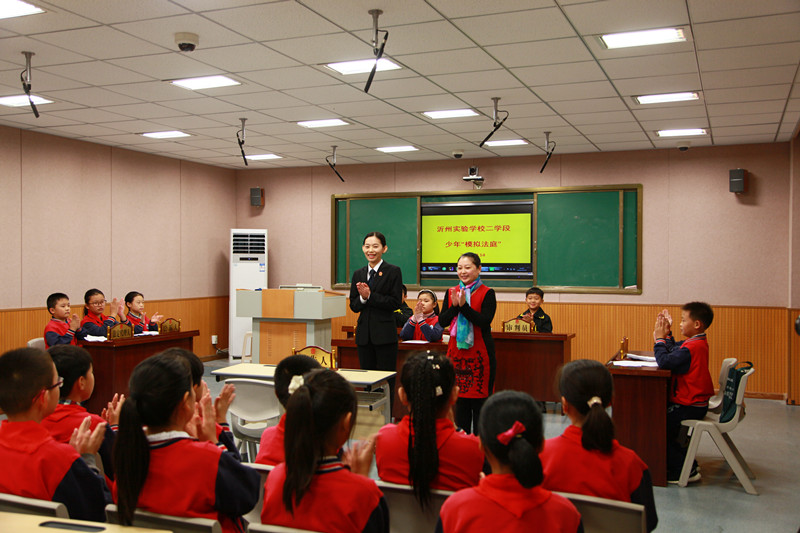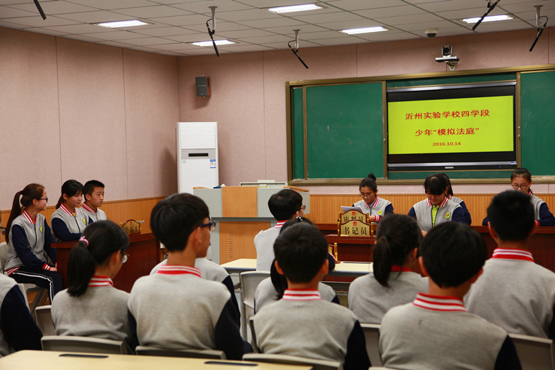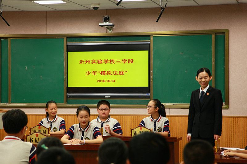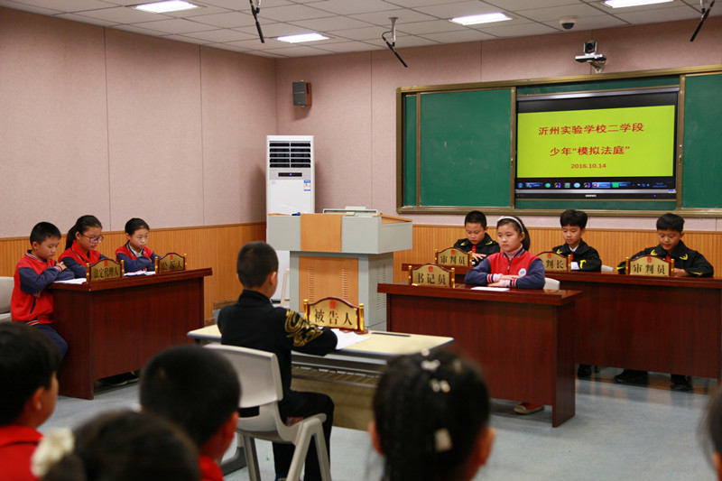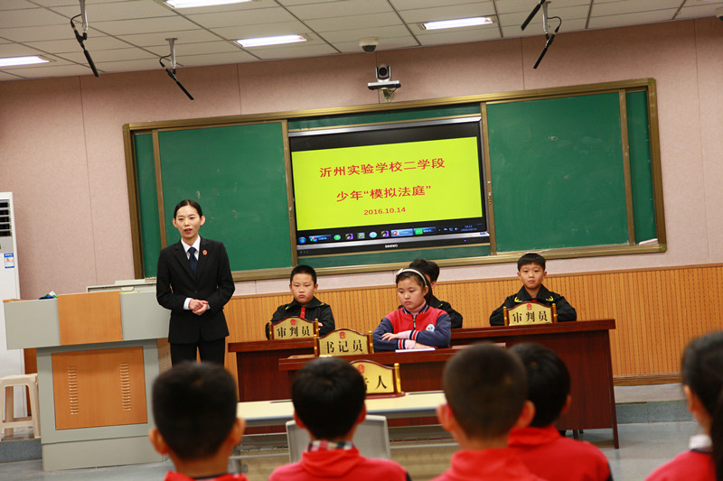 10月14日下午,我校二、三、四学段在录播室举行了“模拟法庭”庭审活动。我们邀请临沂市兰山区人民法院少审庭苏雅楠法官现场指导。