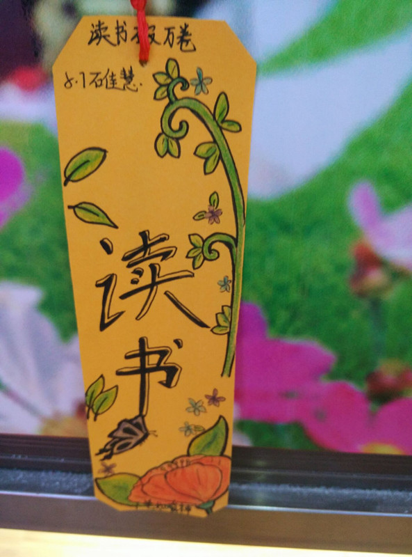 书籍是人类宝贵的精神财富,书籍是开启智慧之门的钥匙,读书使人灵秀聪慧,读书令人识趣明礼,为了让书籍成为每一位同学的好朋友,2016年12月12日,沂州实验学校的读书节开幕了,本次读书节历时两周,活动丰富多彩,有学生喜欢的跳蚤市场,好书推荐会,猜谜语活动,影视欣赏,经典诵读,诗文朗颂,还有创意书签活动,这次的创意书签活动,有5至8年级的学生参加,学生们以班级为单位,互相合作,互相配合,集思广益,积极动手动脑,精心设计,每幅作品均构思新颖,设计精巧,充分体现了孩子们的丰富的想象力和创造力。个性书签形状多种多样,有叶行,心形,钥匙行,各类卡通人物和动物等,小小的一方书签,折射出孩子们对书籍那份浓浓的热爱之情,小小的一方书签,让我们惊喜地发现孩子们的创造力是无穷的,这些别致的书签增添了校园文化氛围,并以一种特出的方式增添了孩子们关注读书,热爱读书的热情,也见证了孩子们阅读成长过程,对每一个孩子还说都是一次精彩的收获和永恒的记忆。(二学段:杜庆英)