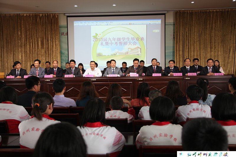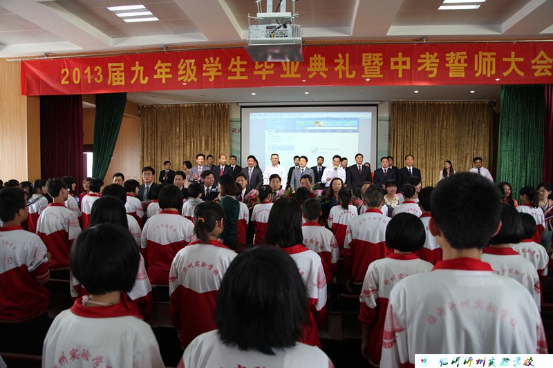 5月13日上午8:30,我校在5楼会议室隆重召开2013届九年级毕业典礼暨誓师大会。