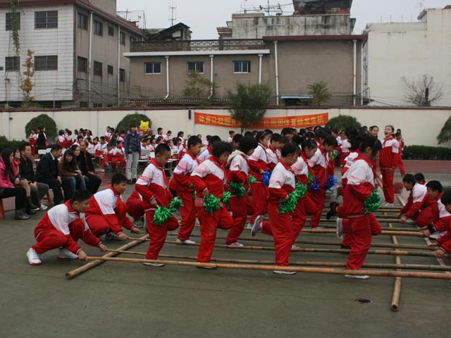 随后,分年级各自展示了竹杠舞、兔子舞、跳小绳、跳大绳、踢毽子、广播操、队列队形七项比赛。同学们个个精神振奋,神采飞扬,充满朝气,尽显活力。现场气氛热烈,活动精彩纷呈。其中,小学部展示的竹竿舞、跳大绳,中学部展示的兔子舞和队形队列给现场师生留下了深刻的印象和美好的回忆。让大家真切感受了阳光体育的情趣和魅力,体验了趣味活动带来的激情和欢乐。