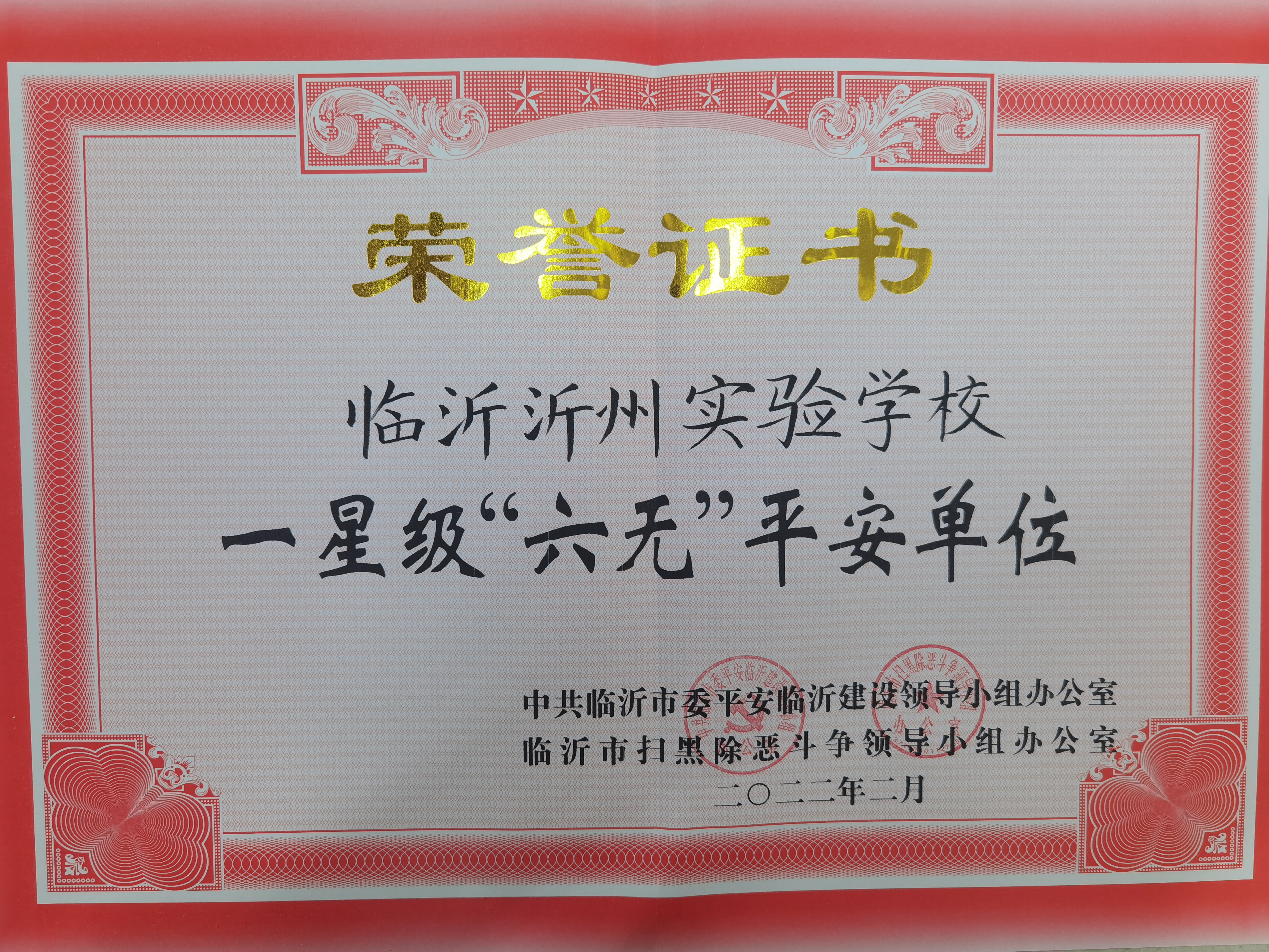 近日,中共临沂市委平安临沂建设领导小组办公室,临沂市扫黑除恶斗争领导小组公布临沂市“六无”平安单位名单,我校荣获首批一星级“六无”平安单位荣誉称号!