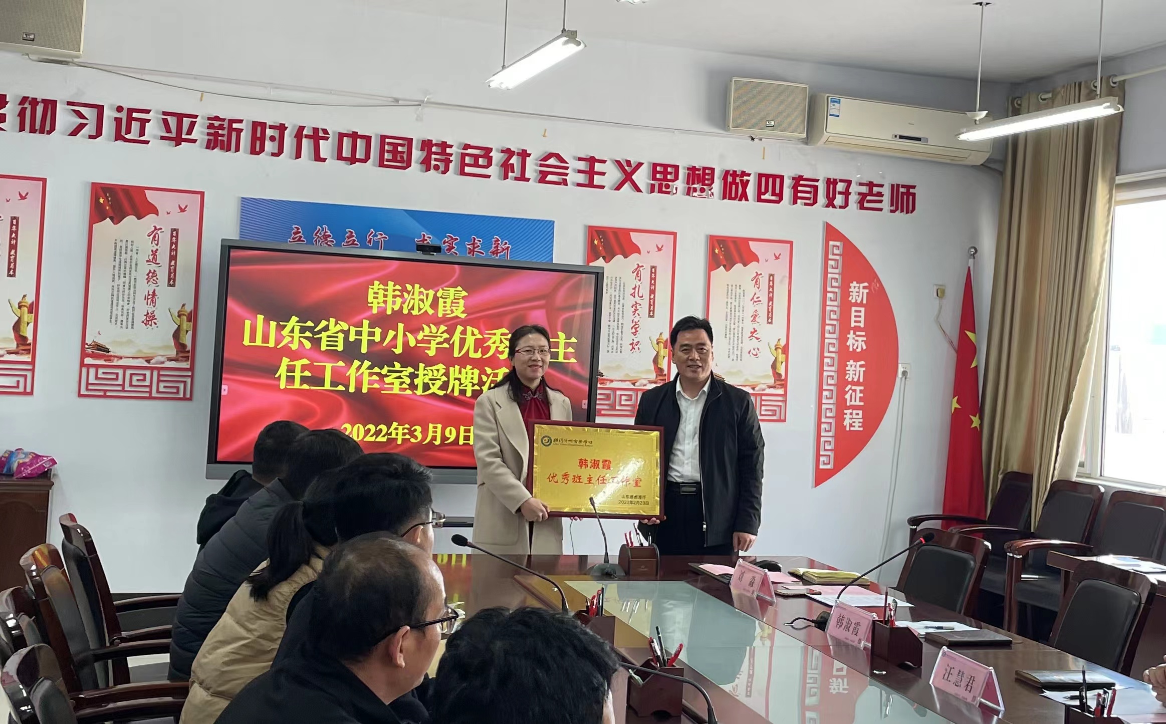 在老师们的期待与掌声中,徐校长为韩淑霞省“优秀班主任工作室”进行授牌。