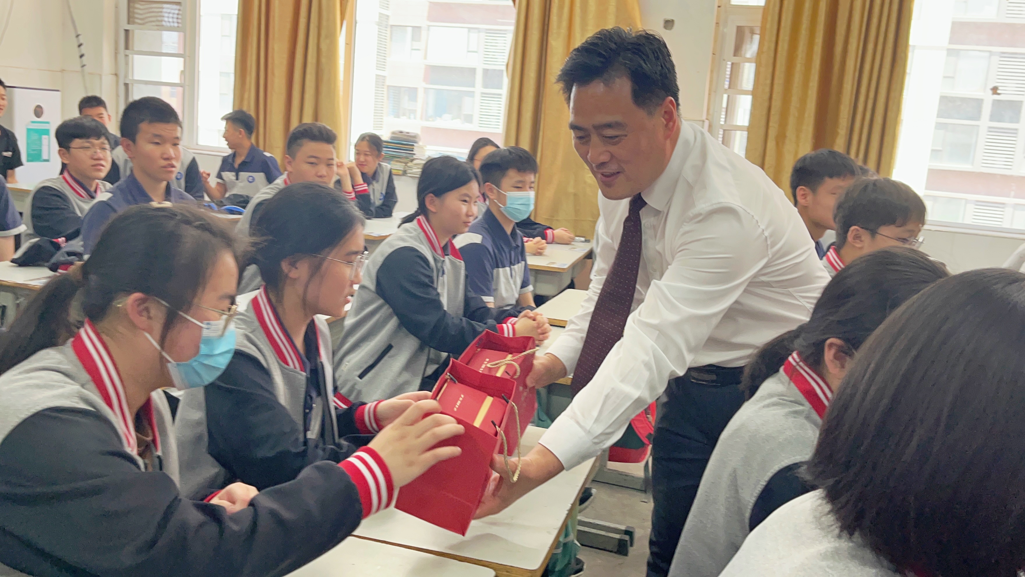 典礼未结束,惊喜不间断。九年级学子们在毕业留影后,还收到了来自学校的一份祝福和礼物。四位校领导为孩子们带来了沉甸甸的毕业礼盒,教室里不时传来欢快的笑语和热烈的掌声。精致的礼盒蕴含浓浓的祝福:苹果祝你平平安安,杏子愿你幸福长久,开心果寓意开开心心,棒棒糖送给最棒的你,牛肉粒寓意牛气冲天,粽子寓意一举高中。学校把最亲切的祝福送给每位同学,希望他们幸福快乐,前程似锦!装饰一新的致远书吧,也成为同学们争相打卡的胜地,留言板上一句句真诚的祝福,彰显着沂州浓浓的师生深情。