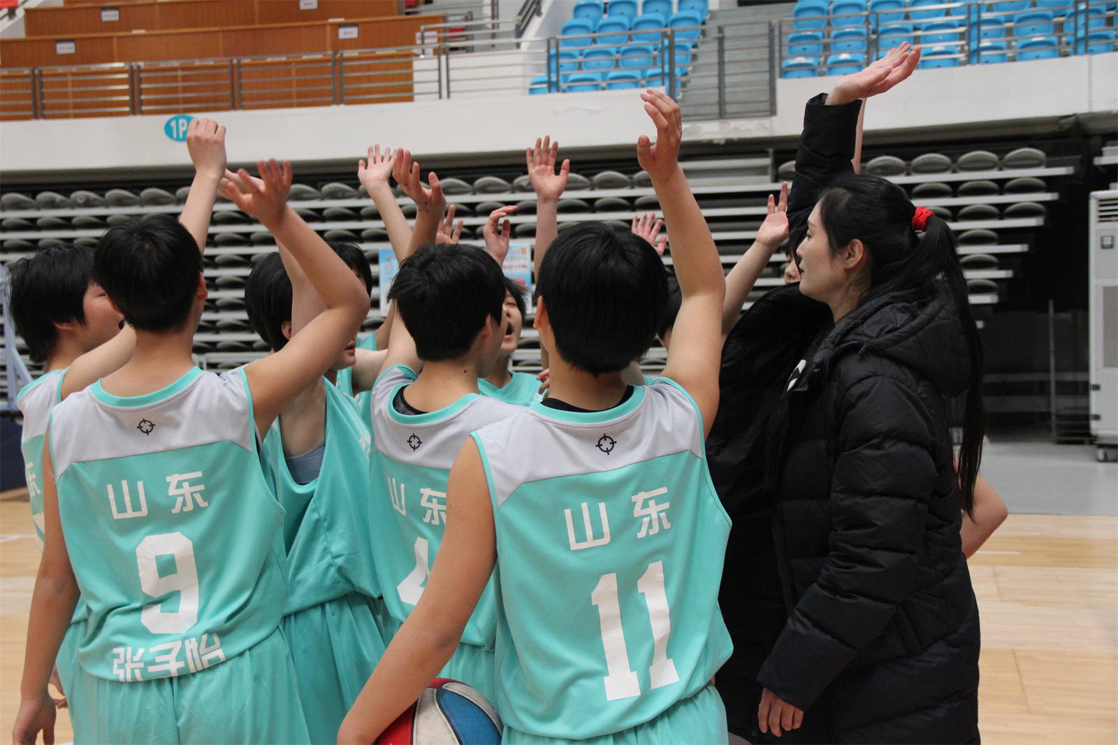 在临沂市青少年实践基地经过五天激烈的角逐,每一位运动员在篮球场上挥汗如雨顽强拼搏,在教练组的精心指导下,我校男子篮球队和女子篮球队相互鼓励、现场加油助威。