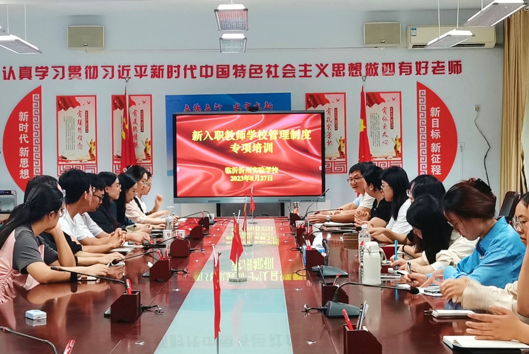 为进一步严格工作纪律,强化岗位意识,提高工作效率和工作质量,帮助新教师明确职责和工作目标,促进教师专业化发展,2023年8月27日,临沂沂州实验学校围绕学校管理制度对新教师展开了专题培训。