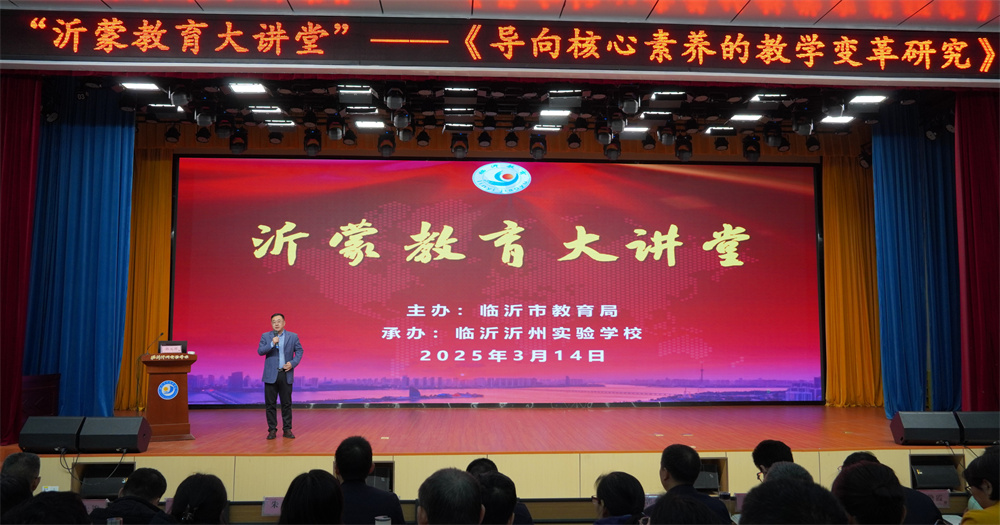 为全面落实立德树人根本任务、深入推进素养本位的新课程改革,提高全市骨干教师、管理队伍主动适应教学变革的意识和能力,2025年3月14日上午,临沂市教育局在我校东校区举办了“沂蒙教育大讲堂”之《导向核心素养的教学变革研究》活动,市局有关科室和市教科院相关领导以及市直中小学骨干教师在现场参加活动,各县区相应的领导老师则通过线上集中收看了相关活动。临沂市教育局副局长刘志鹏主持了本次活动。